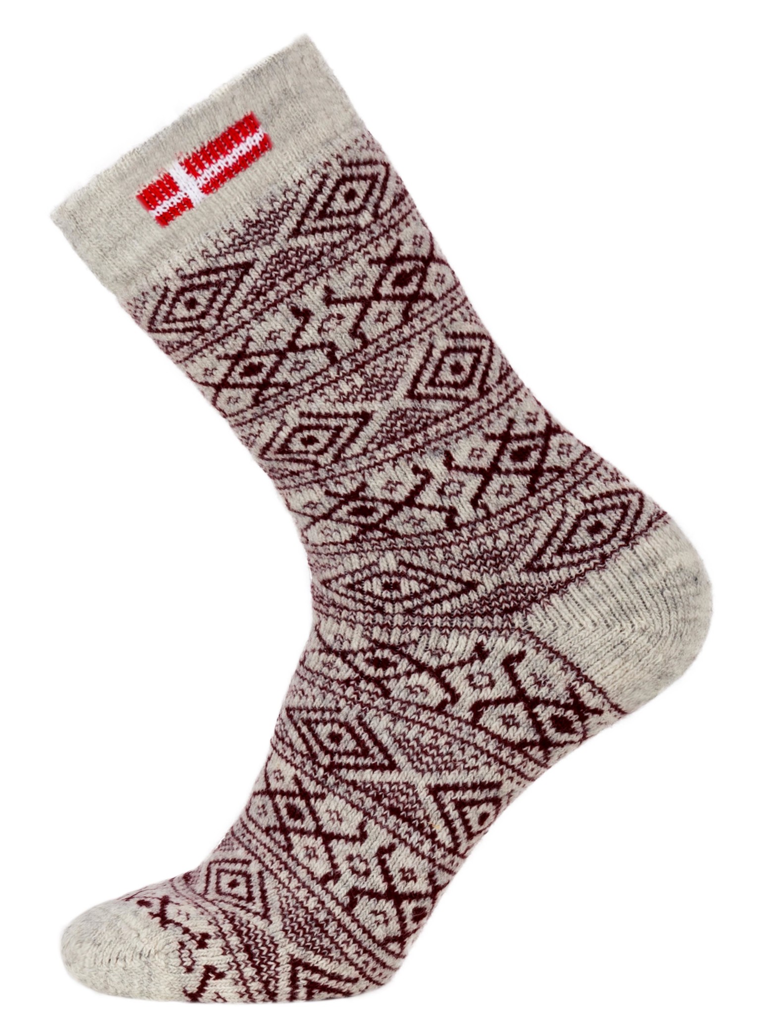 2 Paar Norweger-ABS-Socken mit Schafwolle Braun/Beige