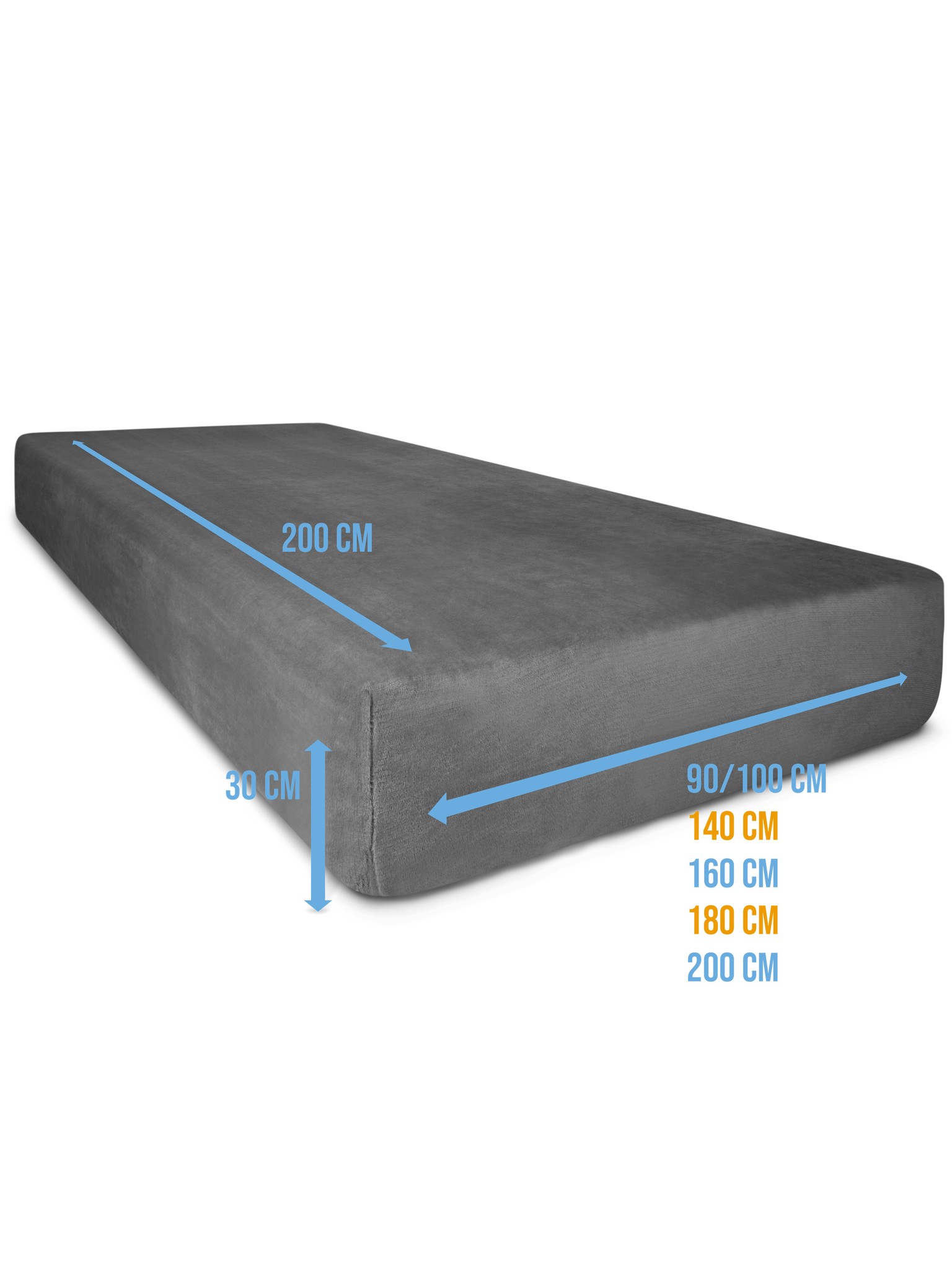 Unsere flauschig weichen Teddy-Fleece Flanell Spannbettlaken setzten sich aus 100 % Polyester zusammen. Die Spannbettlaken passen auf Matratzen mit der Größe 90-100 x 200 cm, 140 x 200 cm, 180 x 200 cm. Durch das hochwertige umlaufende Gummiband ist eine einfache Handhabung möglich. Mithilfe der Schonwäsche werden die Spannbettlaken bei bereits 30 °C wieder sauber.