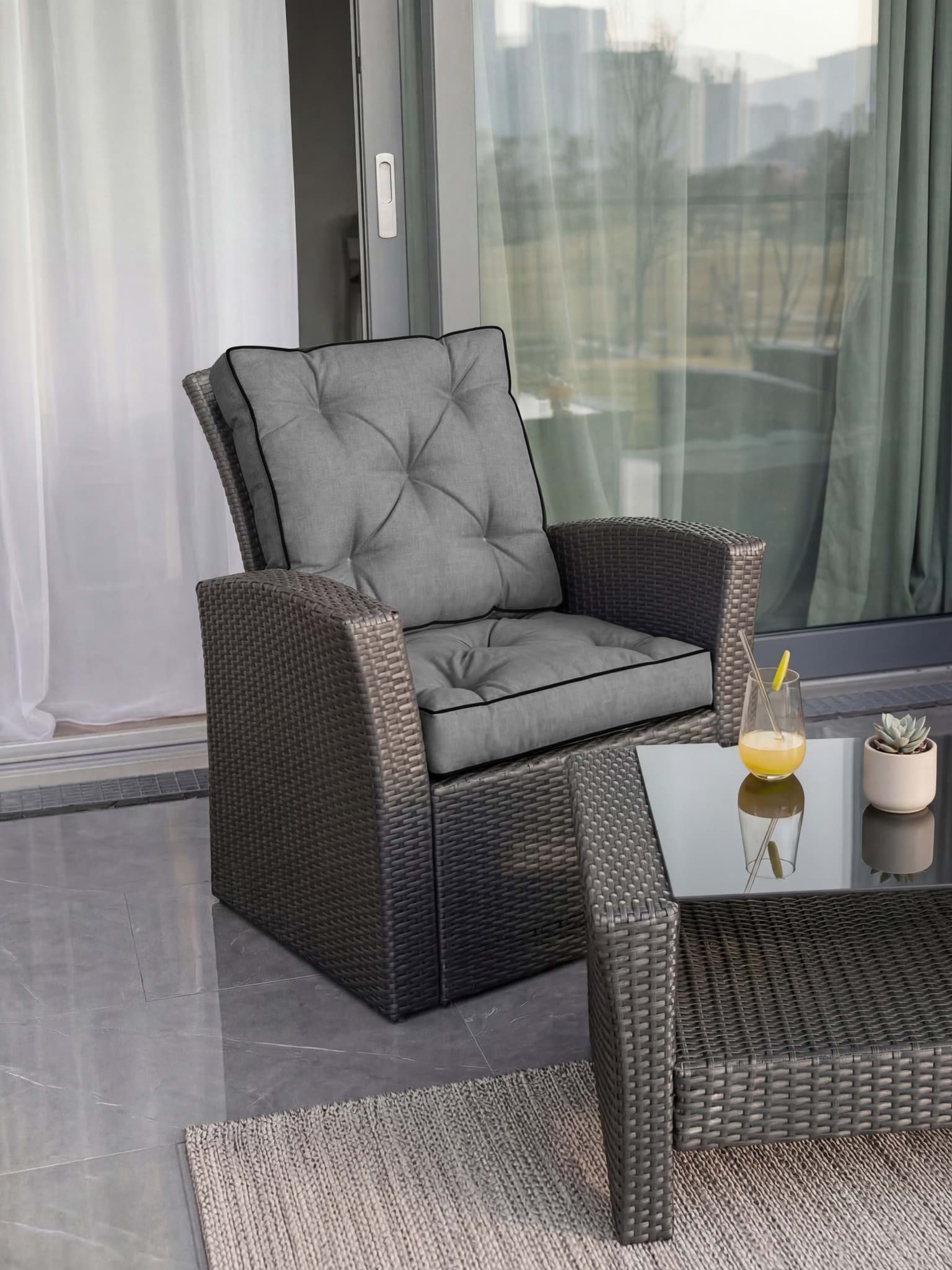 Eigenschaften • 2er Set – ideal für mehrere Stühle oder eine Bank • Perfekt geeignet für Haus, Garten und Balkon • Mit praktischem Tragegriff ausgestattet • Füllung: 100 % weiche Polyesterwatte (10 cm Höhe mit Bezug) • Weiches, wasserabweisendes und hautfreundliches Polyester-Material • Hergestellt in Polen – für kurze Transportwege und hohe Produktionsstandards • Leichte Reinigung