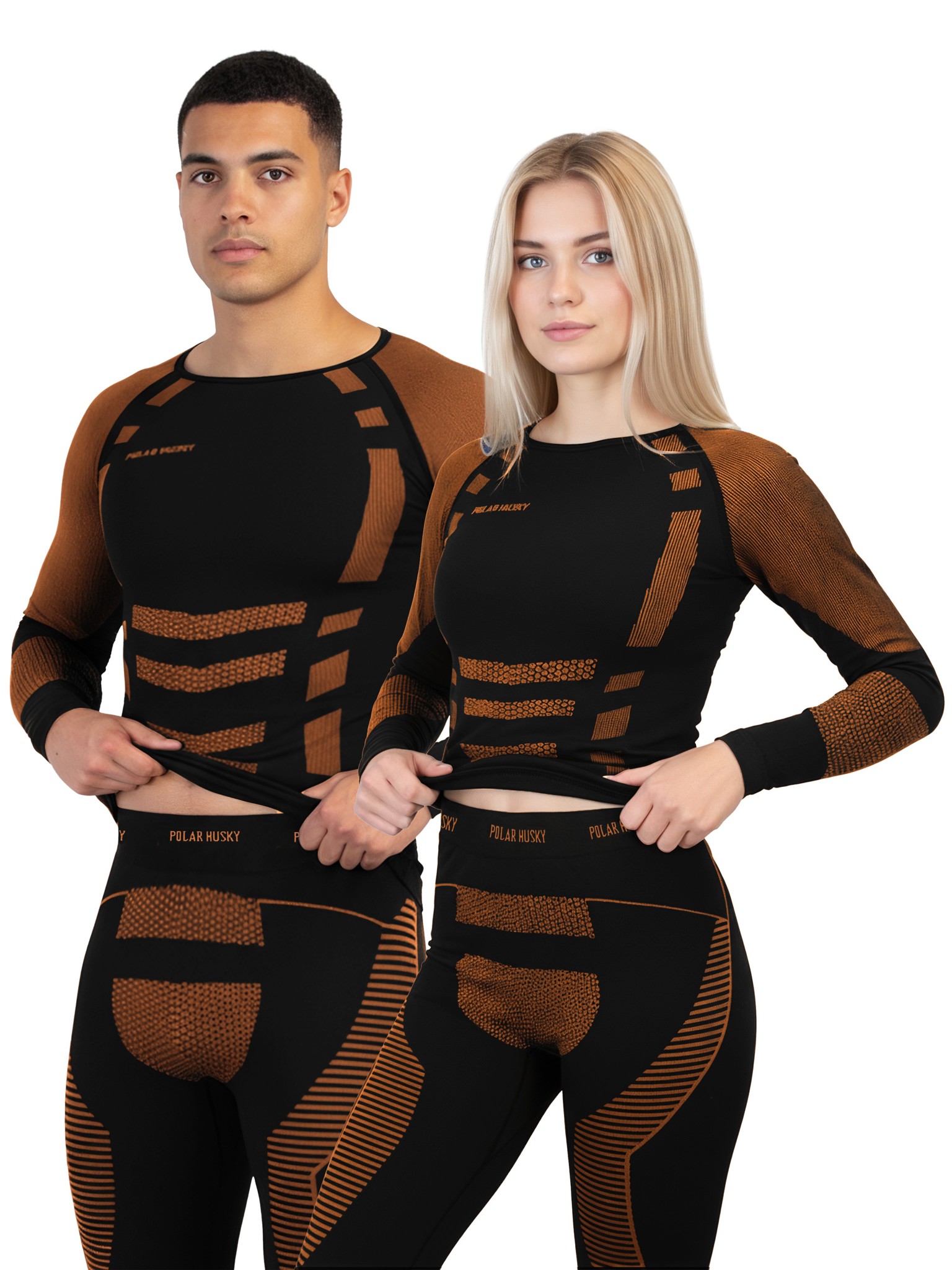 2 x Lange Unterhosen Ski- und Thermounterwäsche Schwarz/Orange