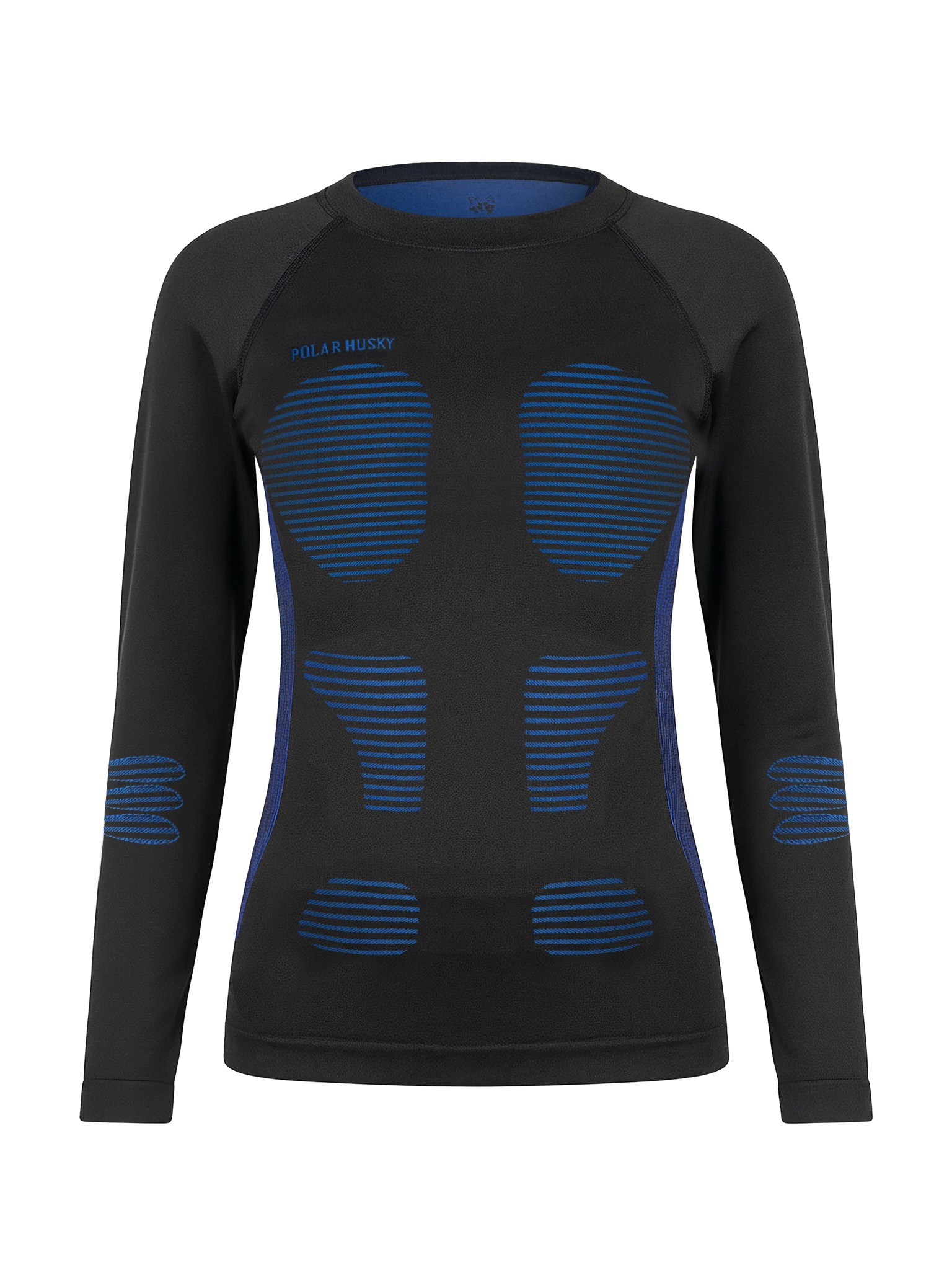 2 x Thermooberteil Langarm Shirt Skiunterwäsche für Damen Blau/Schwarz
