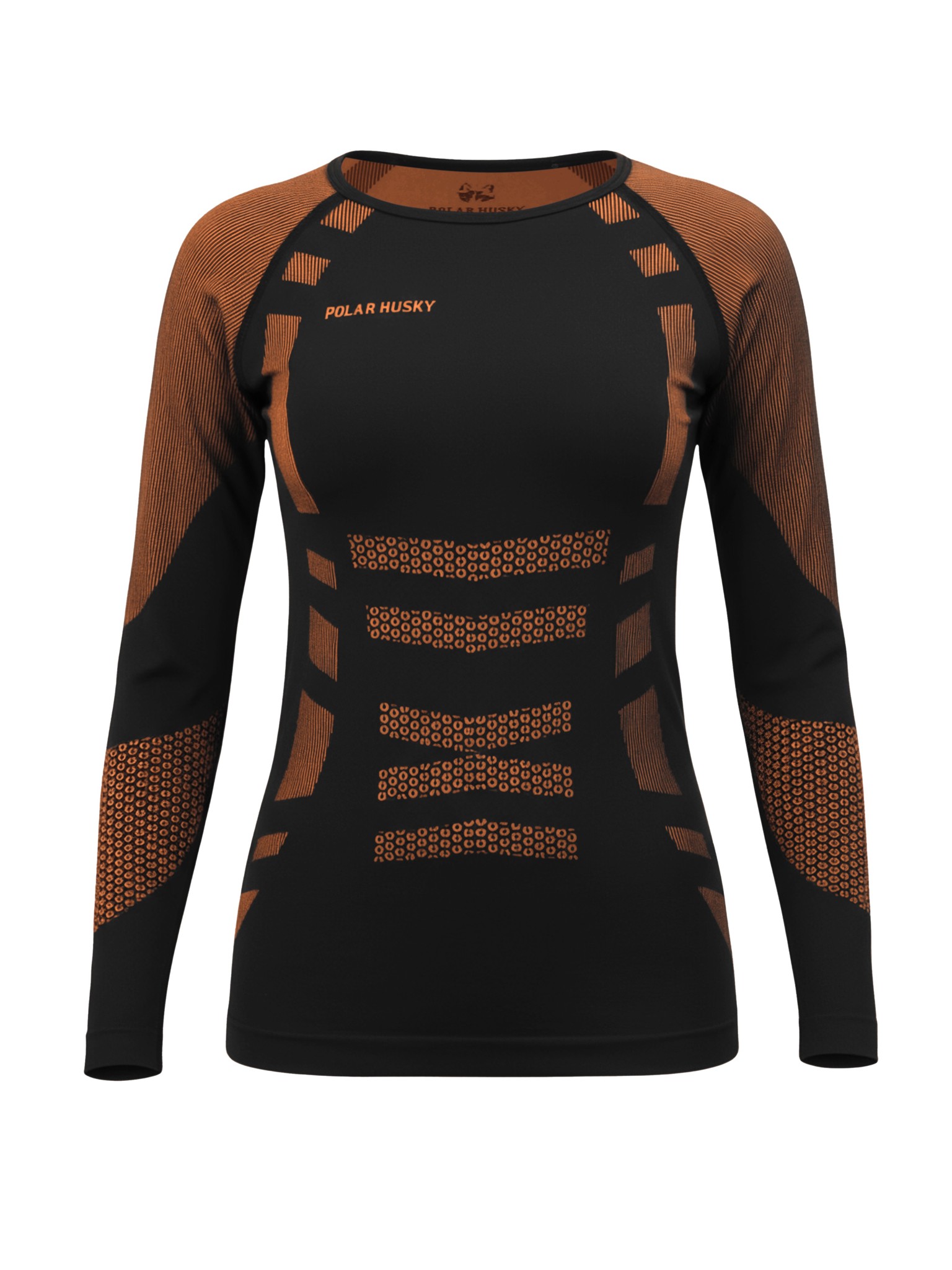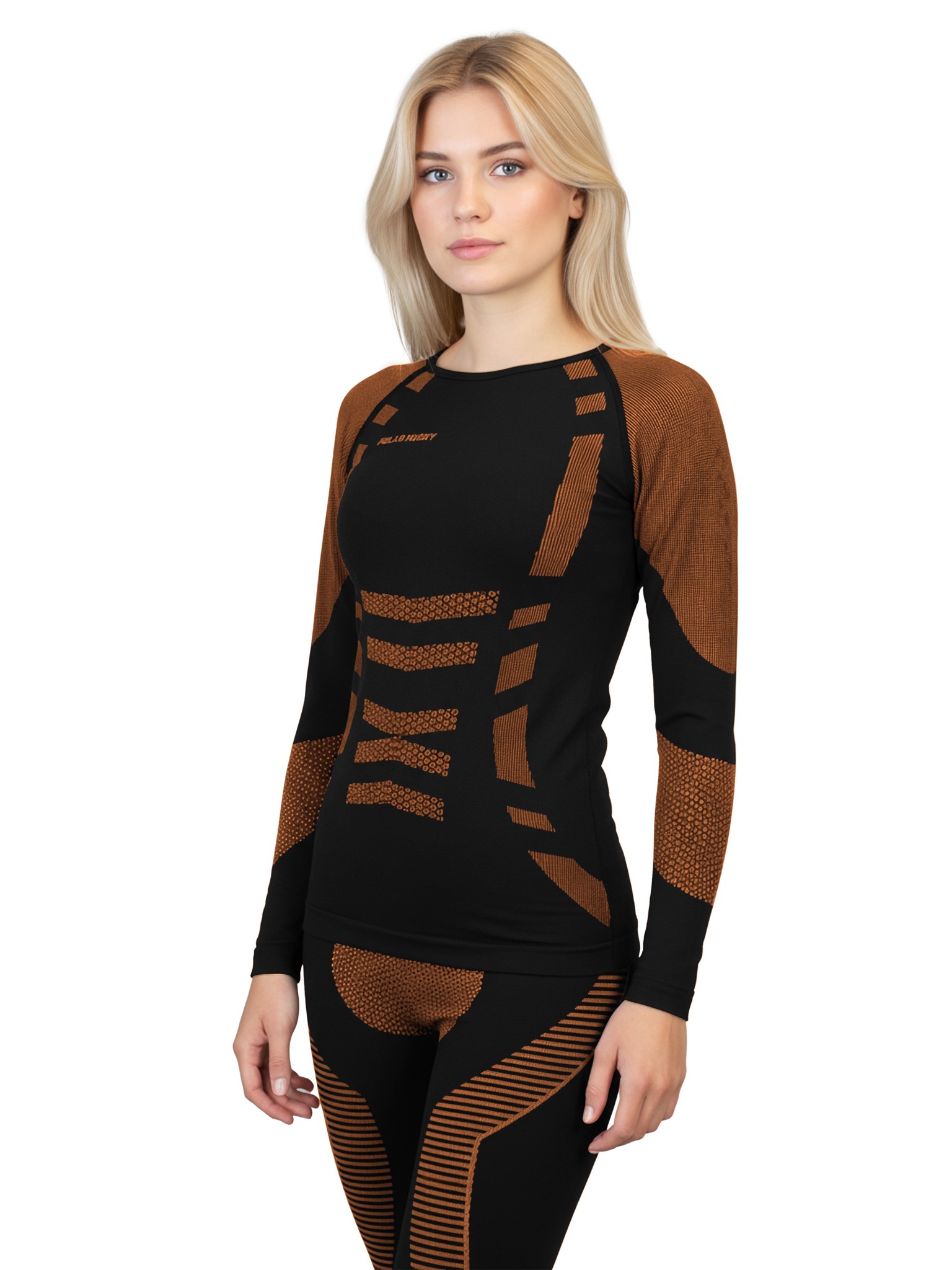2 x Thermooberteil Langarm Shirt Skiunterwäsche für Damen Schwarz/Orange