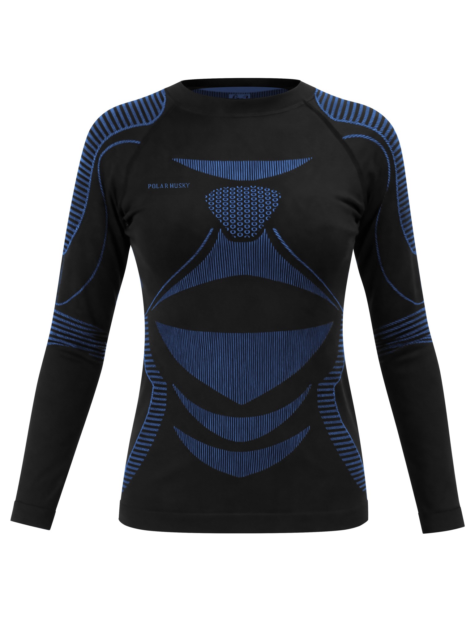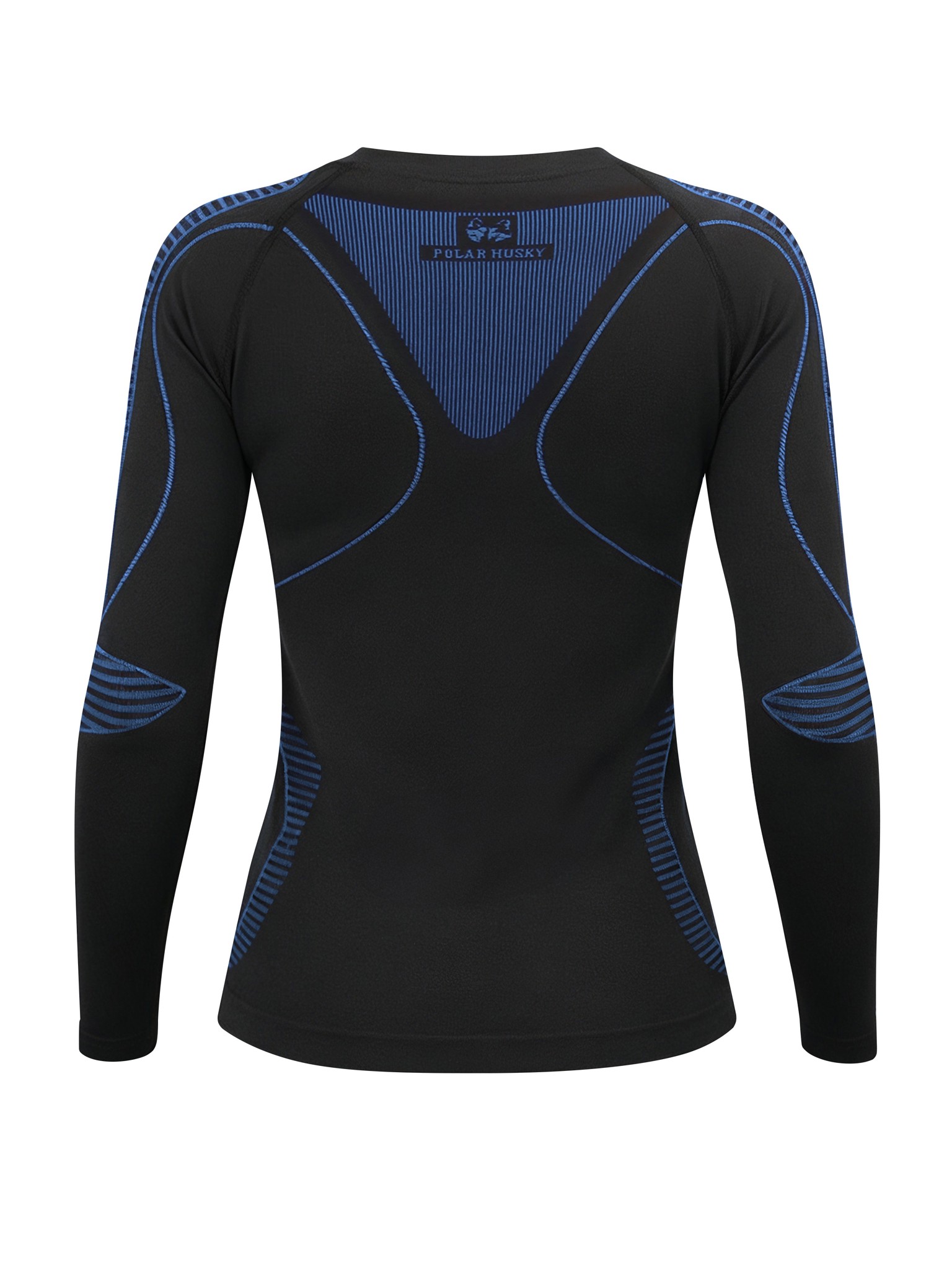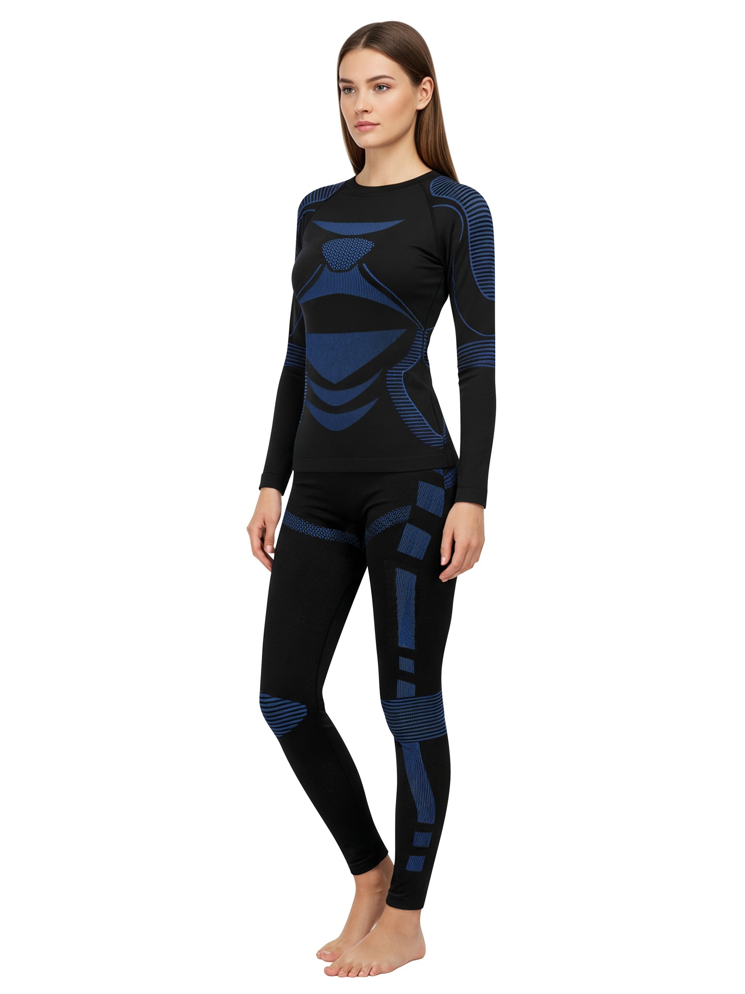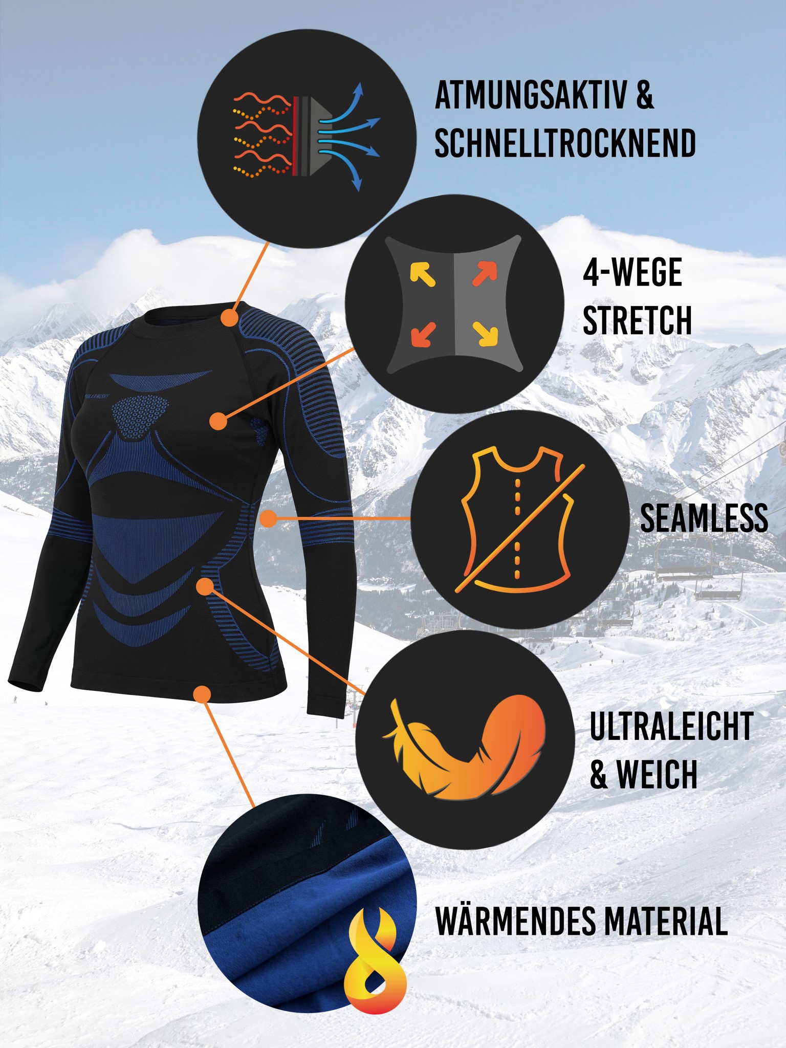 2 x Thermooberteil Langarm Shirt Skiunterwäsche für Damen Blau/Schwarz