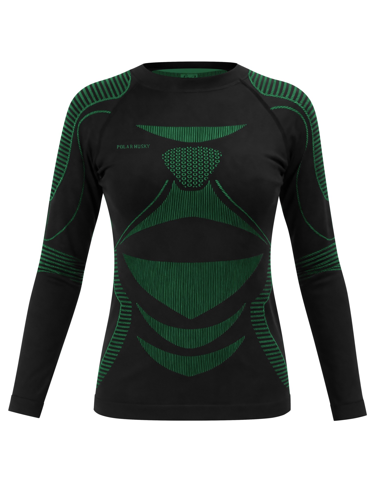 2 x Thermooberteil Langarm Shirt Skiunterwäsche für Damen Grün/Schwarz