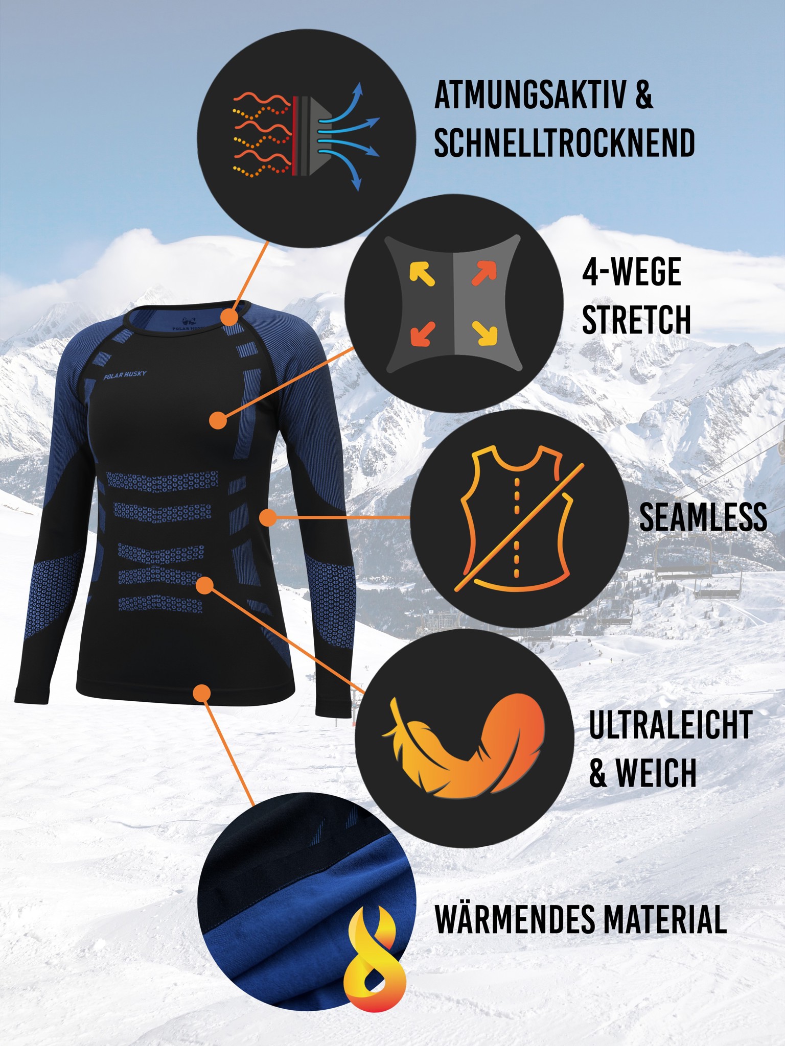 2 x Thermooberteil Langarm Shirt Skiunterwäsche für Damen und Herren Blau