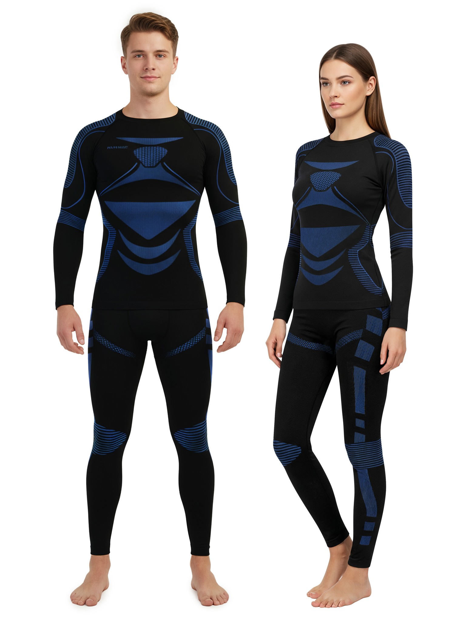 2 x Thermooberteil Langarm Shirt Skiunterwäsche für Damen und Herren Blau/Schwarz