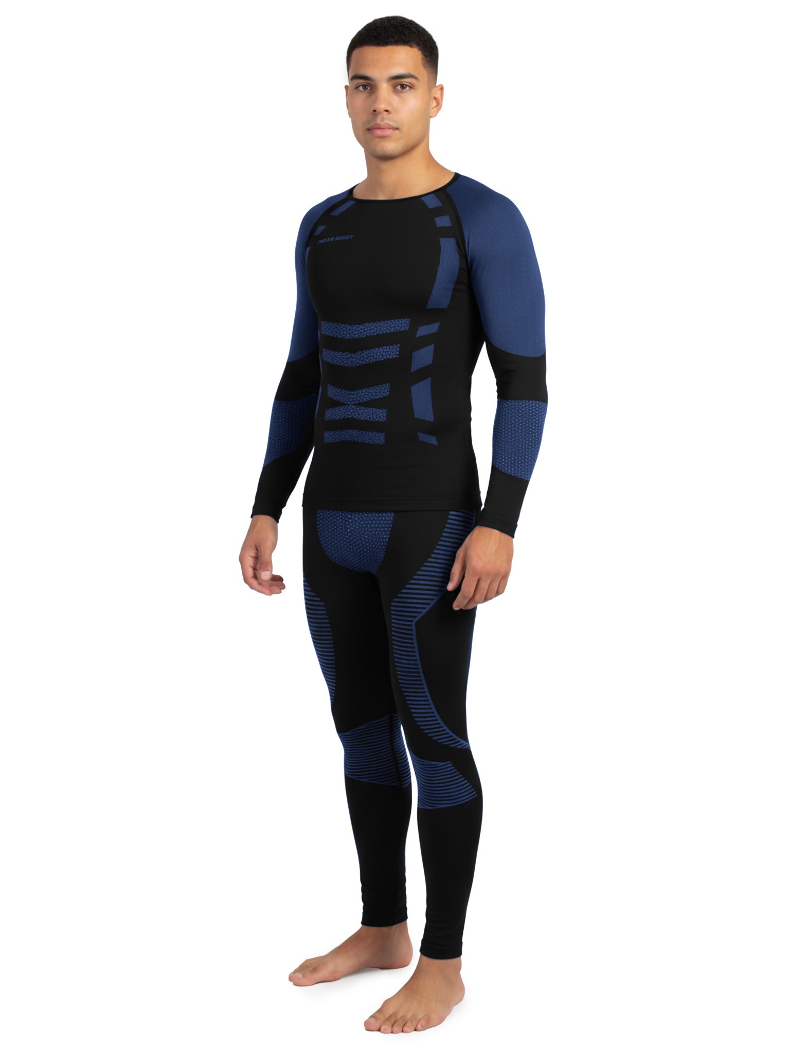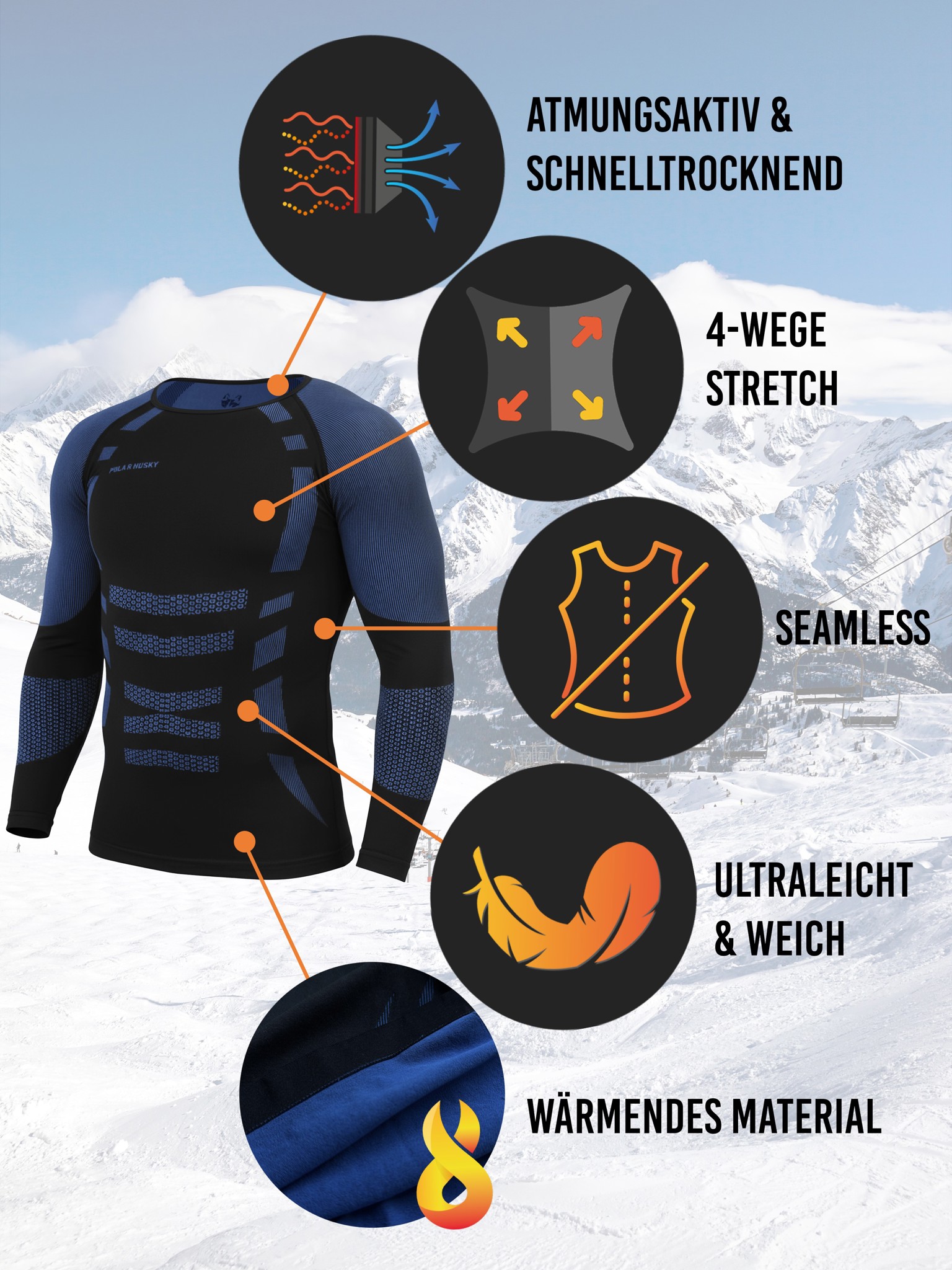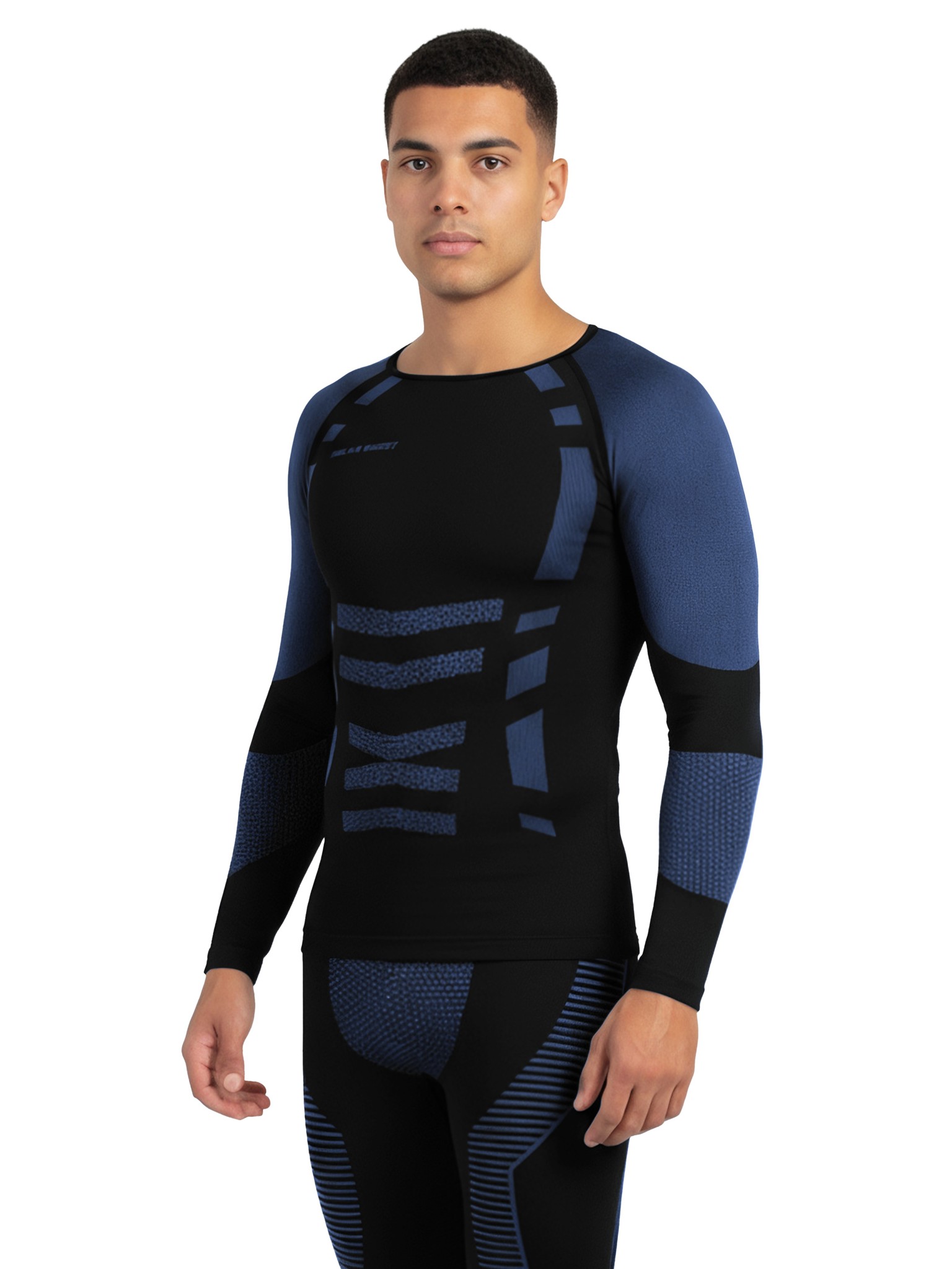 2 x Thermooberteil Langarm Shirt Skiunterwäsche für Herren Blau
