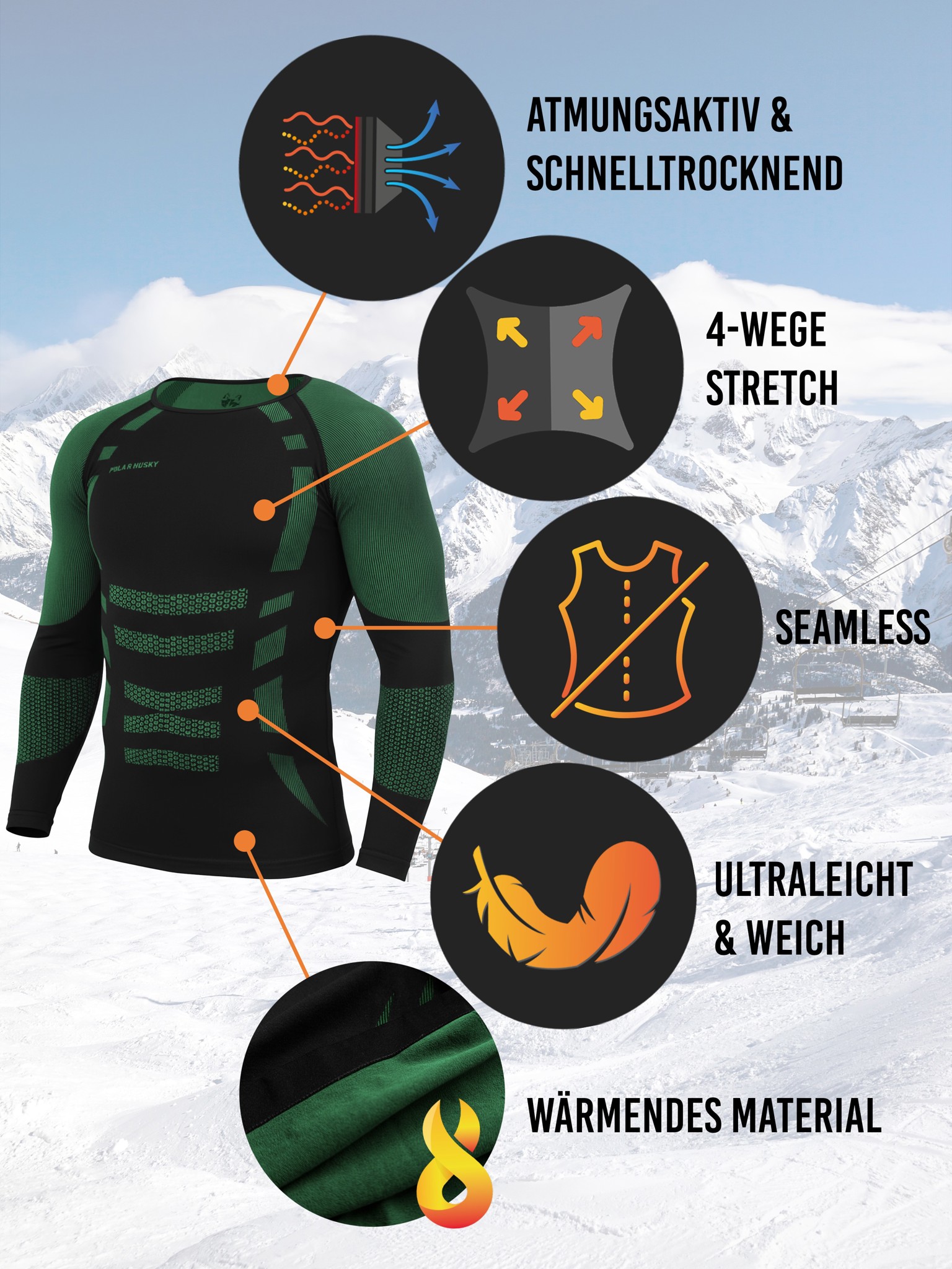 2 x Thermooberteil Langarm Shirt Skiunterwäsche für Herren Schwarz/Grün