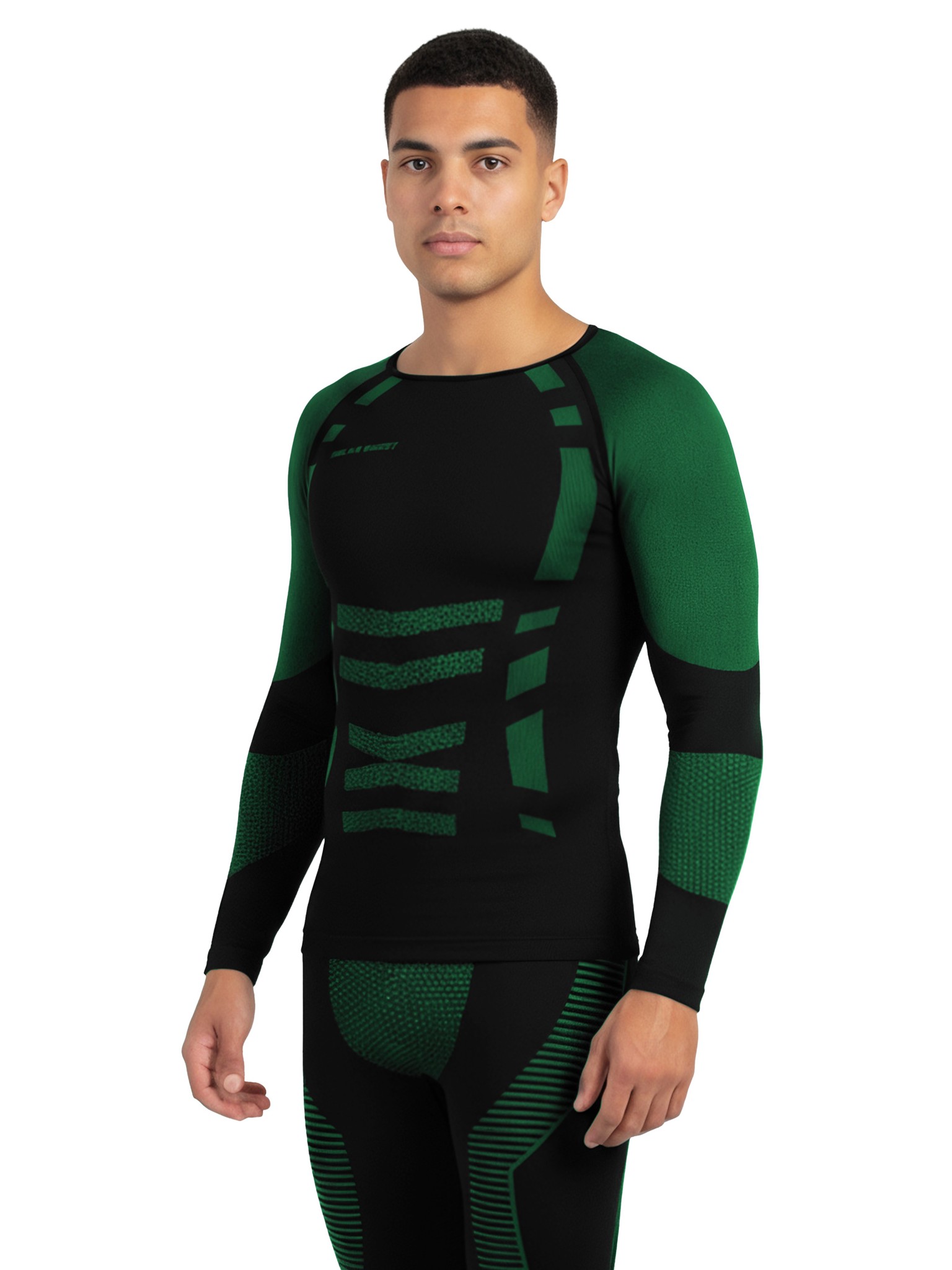 2 x Thermooberteil Langarm Shirt Skiunterwäsche für Herren Grün