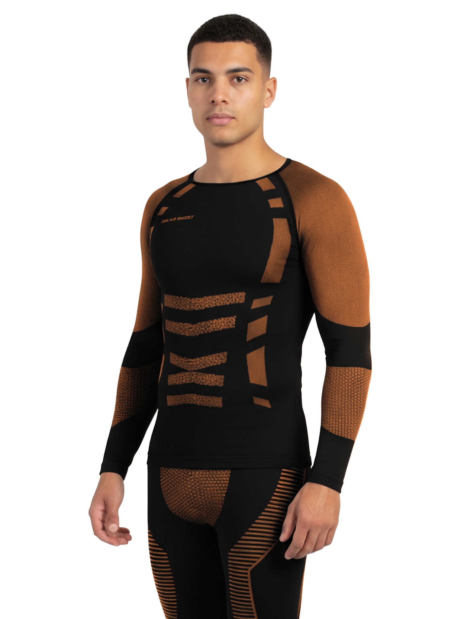 2 x Thermooberteil Langarm Shirt Skiunterwäsche für Herren Schwarz/Orange