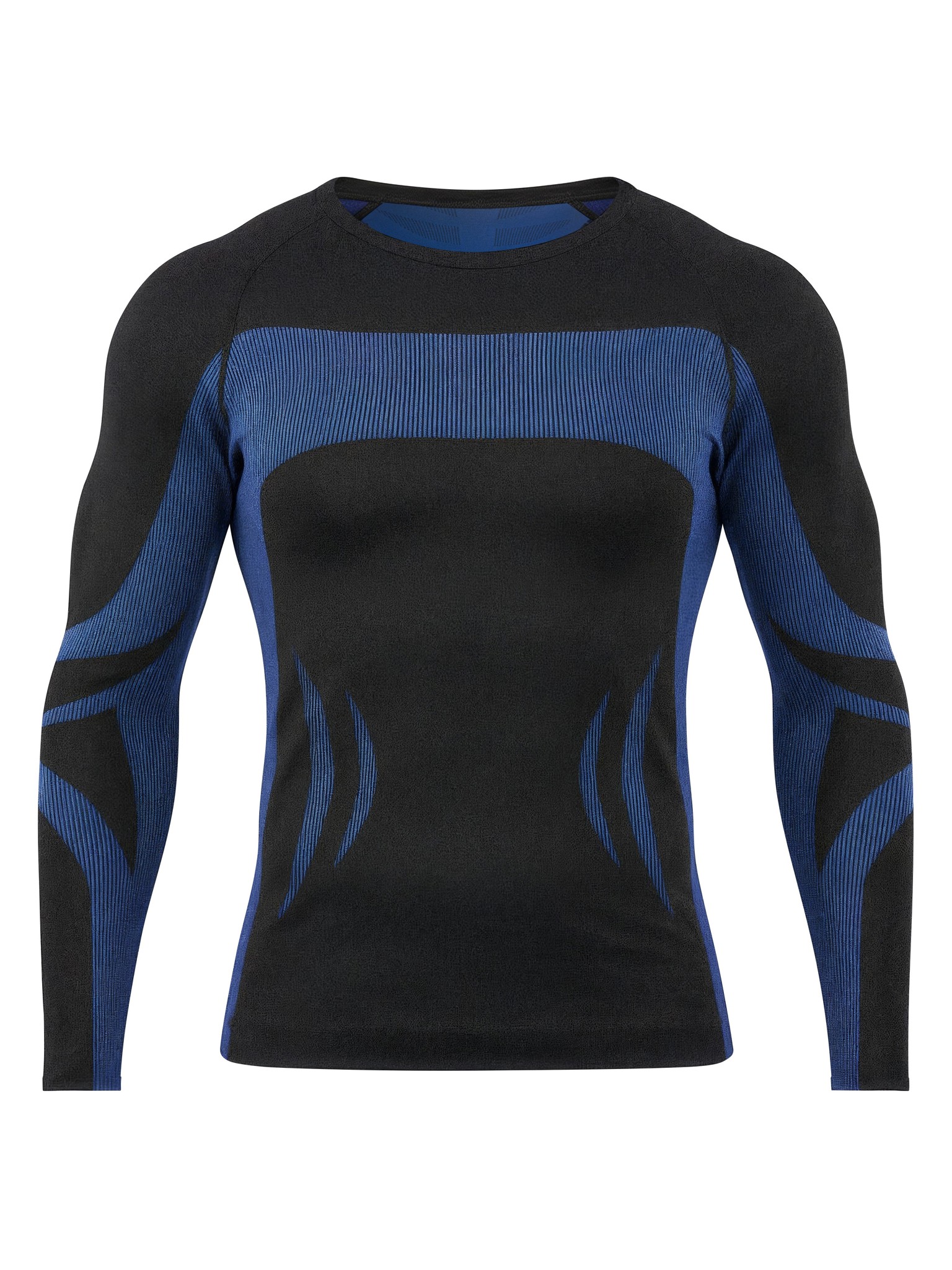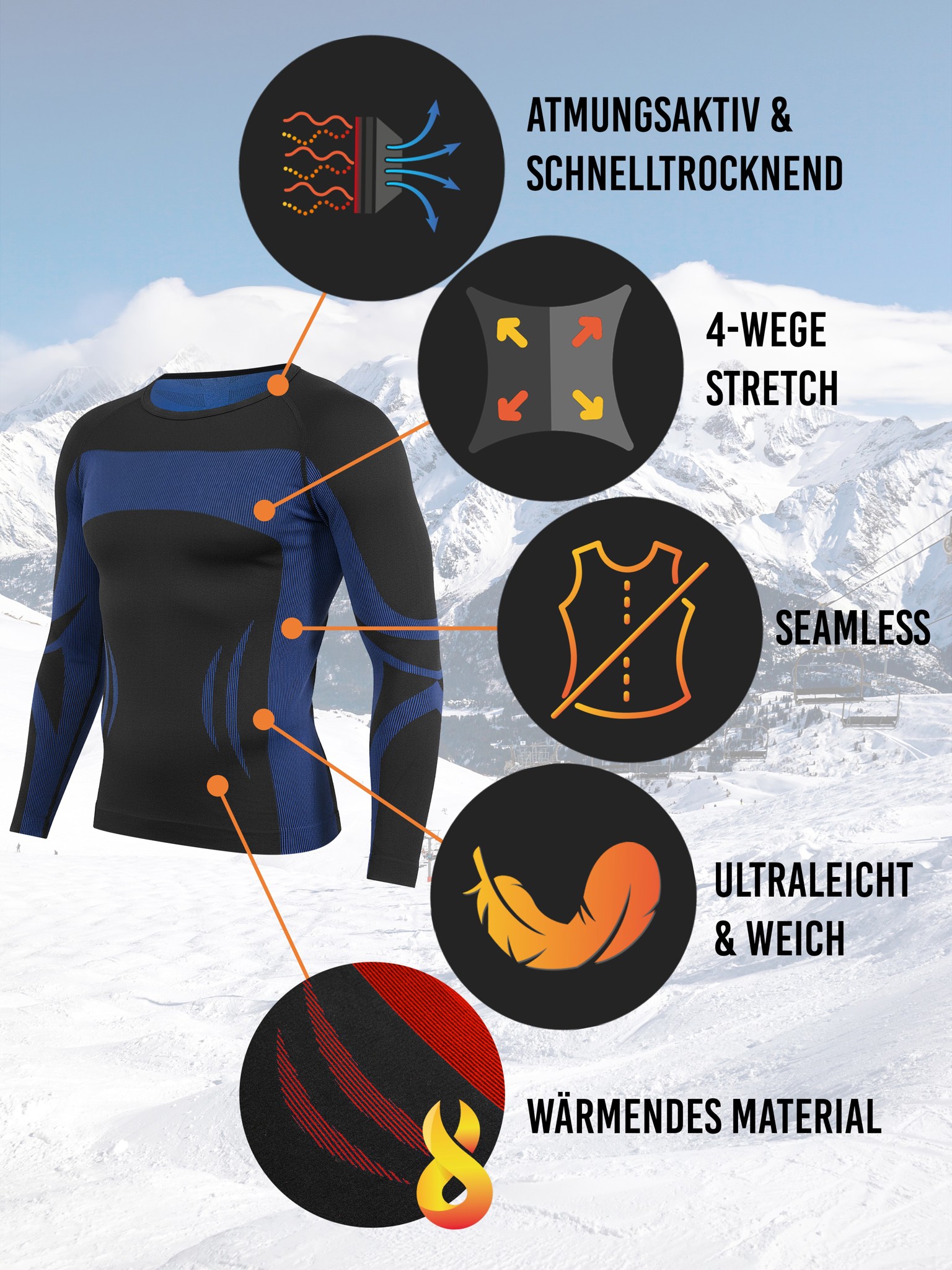 2 x Thermooberteil Langarm Shirt Skiunterwäsche für Herren Schwarz/Rot + Schwarz/Blau