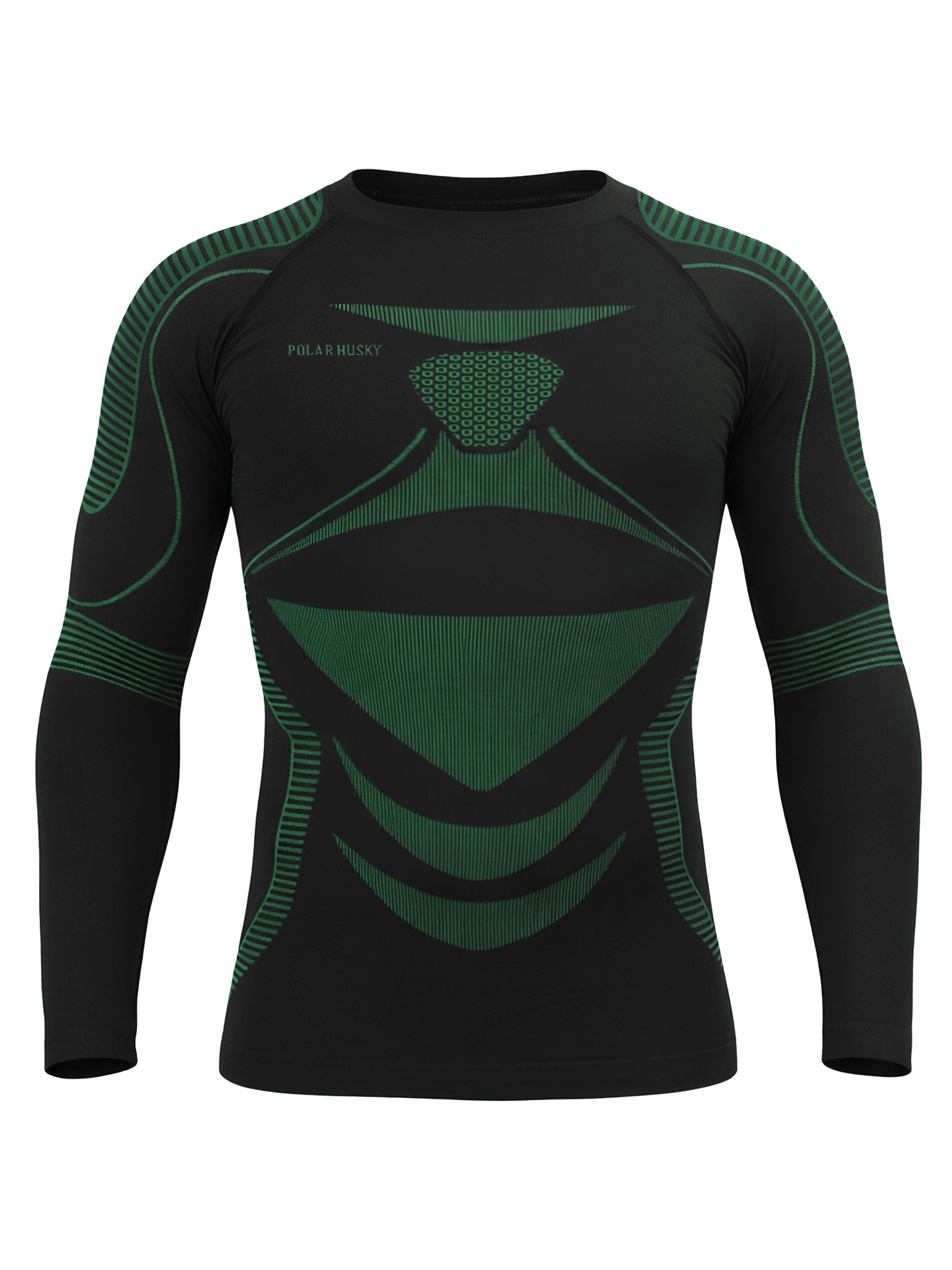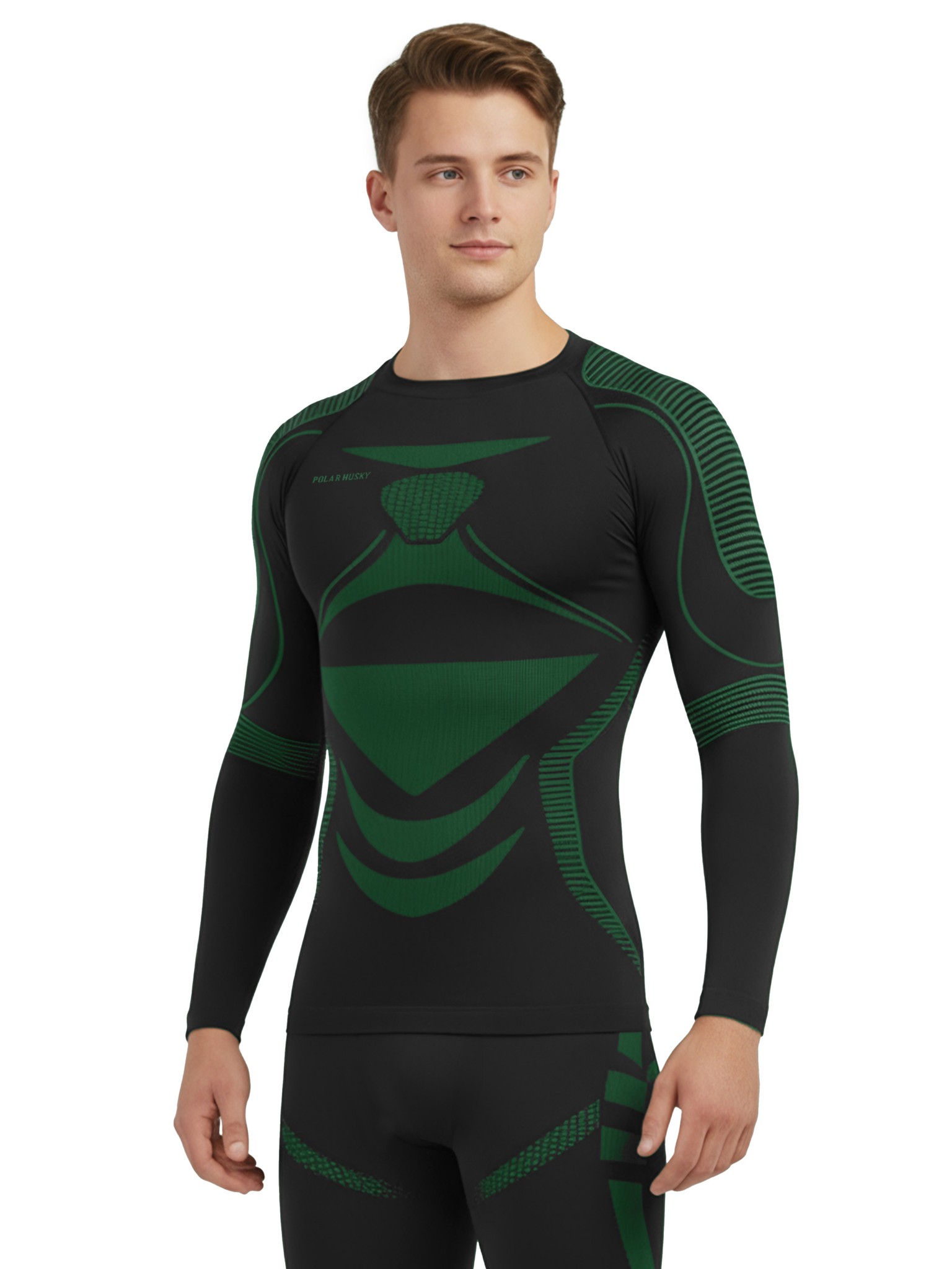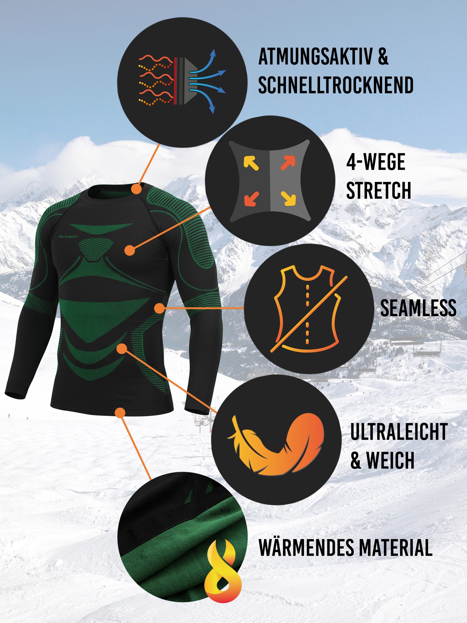 2 x Thermooberteil Langarm Shirt Skiunterwäsche für Herren Grün/Schwarz