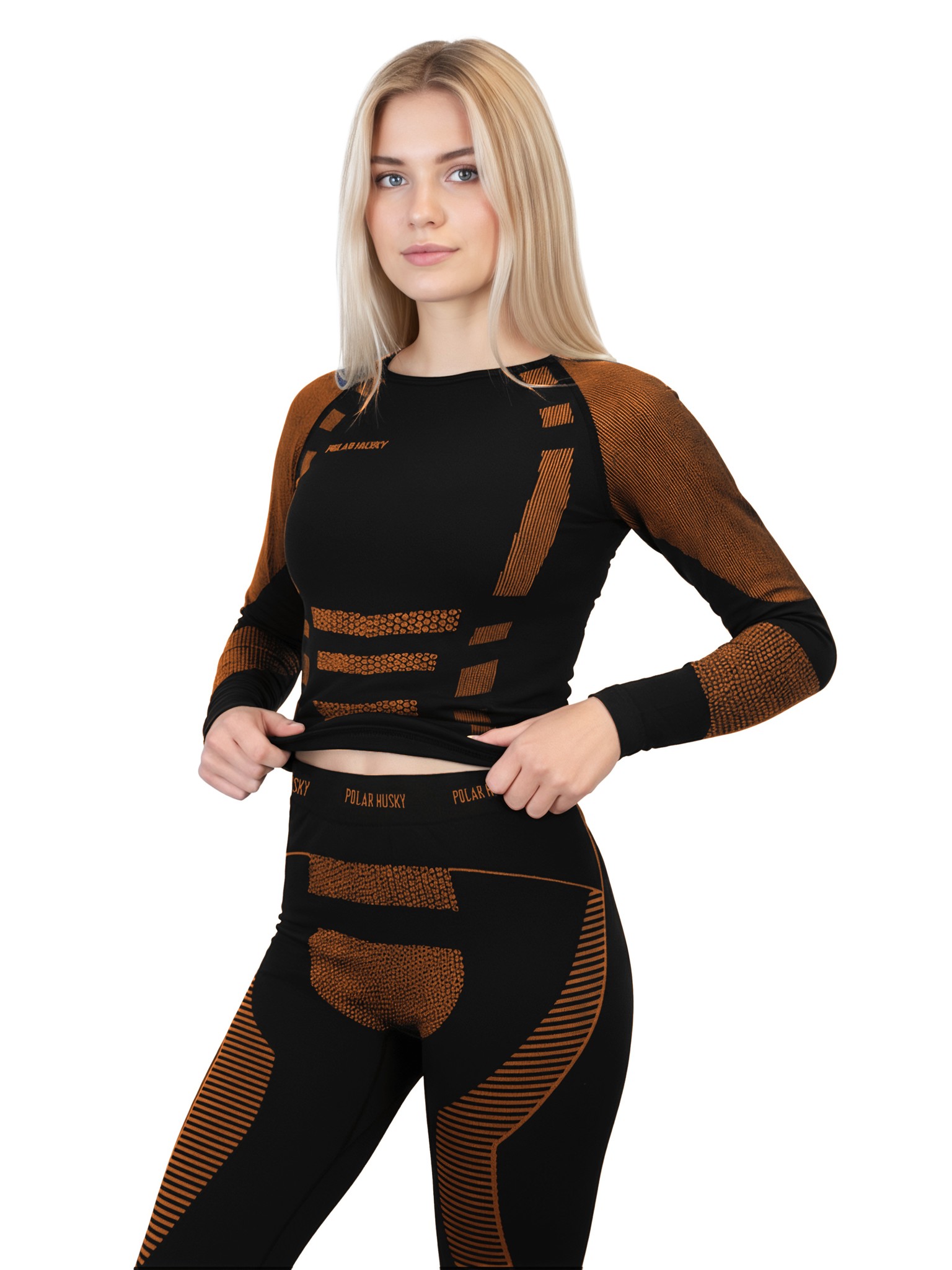 2 x Thermounterhose Lange Skiunterwäsche für Damen Schwarz/Orange