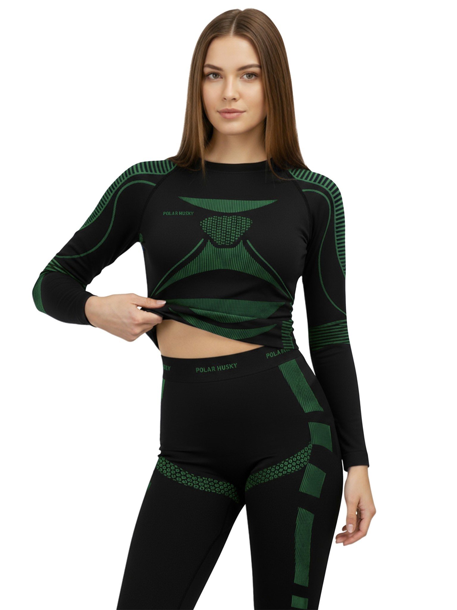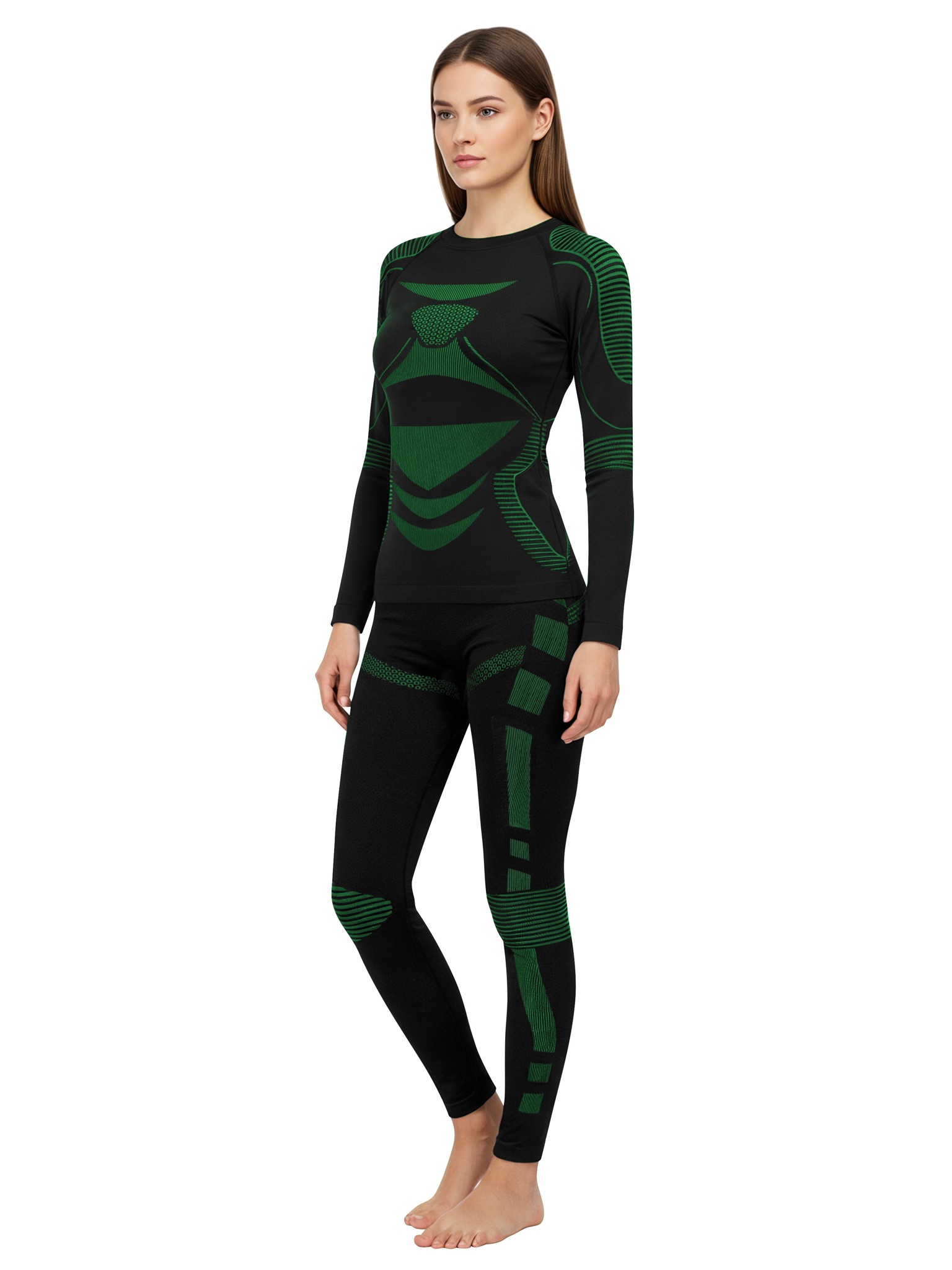 2 x Thermounterhose Lange Skiunterwäsche für Damen Grün/Schwarz