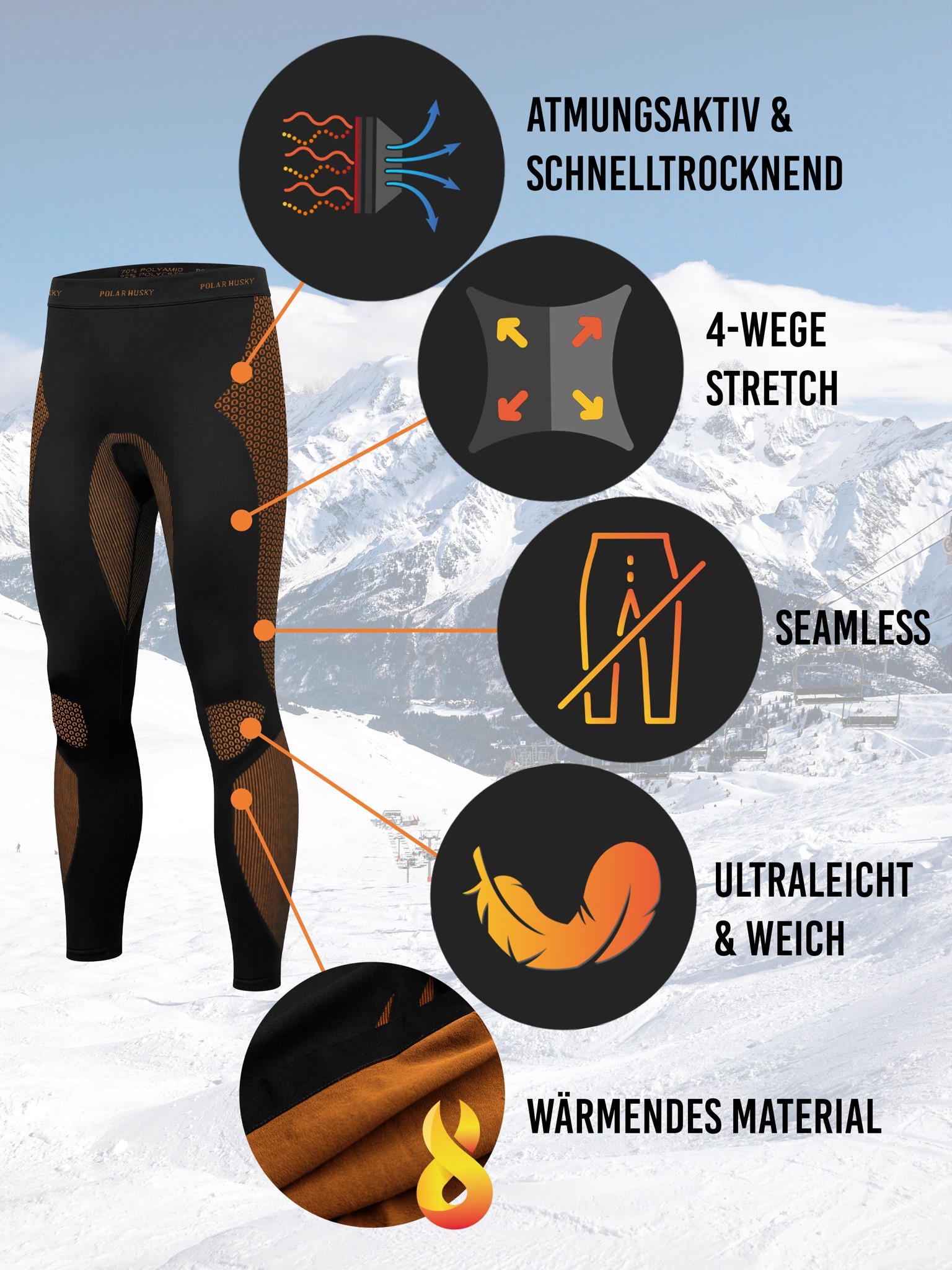 2 x Thermounterhose Lange Skiunterwäsche für Herren Schwarz/Orange