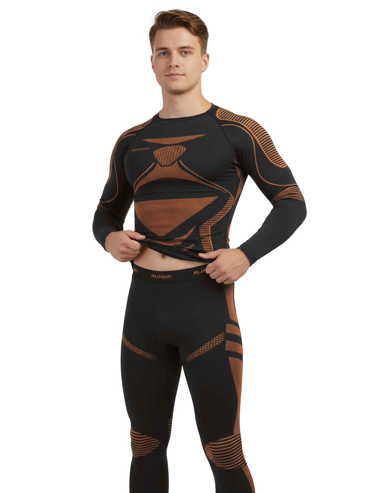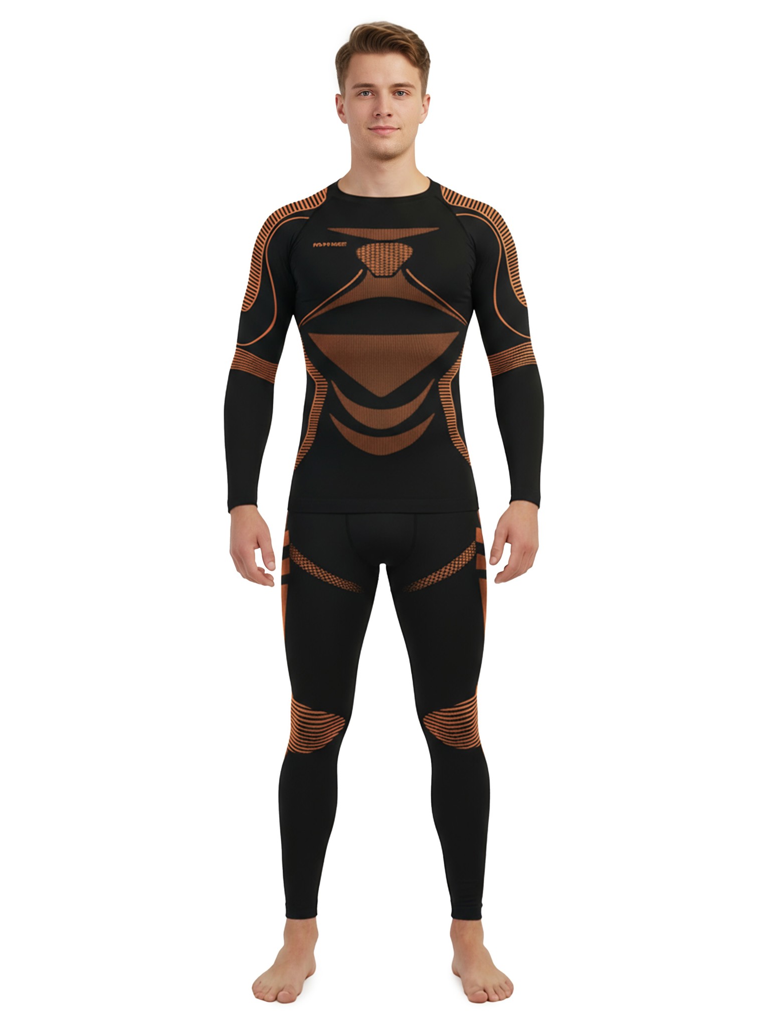 2 x Thermounterhose Lange Skiunterwäsche für Herren Orange/Schwarz