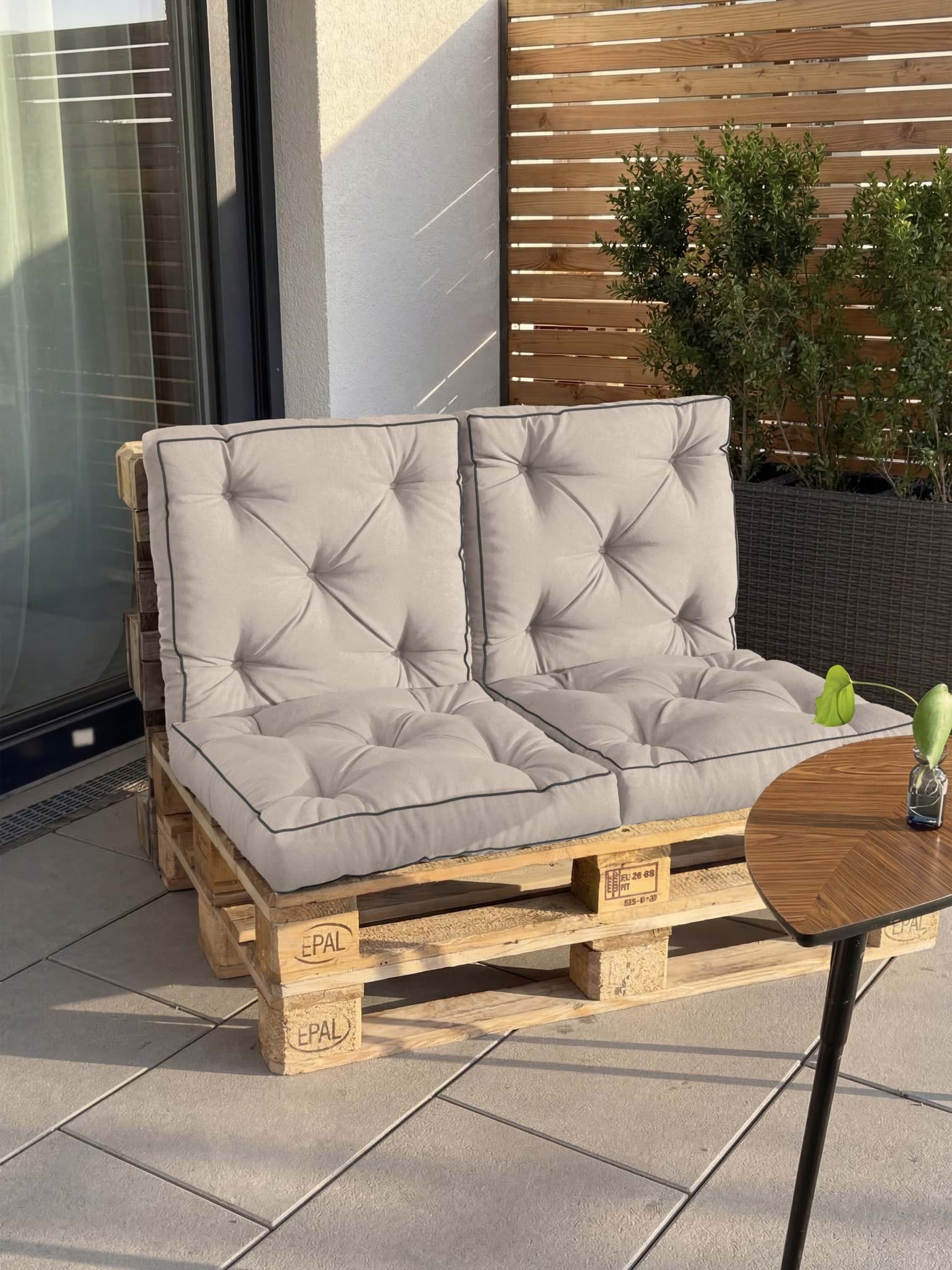 • 4er Set Lounge-Sitzkissen 58x58 cm • Je 11 cm dicke, extra komfortable Polsterung • Ideal für Gartensofa und Palettenmöbel • Wasserabweisender und hautfreundlicher Bezug • Formstabile, langlebige Füllung