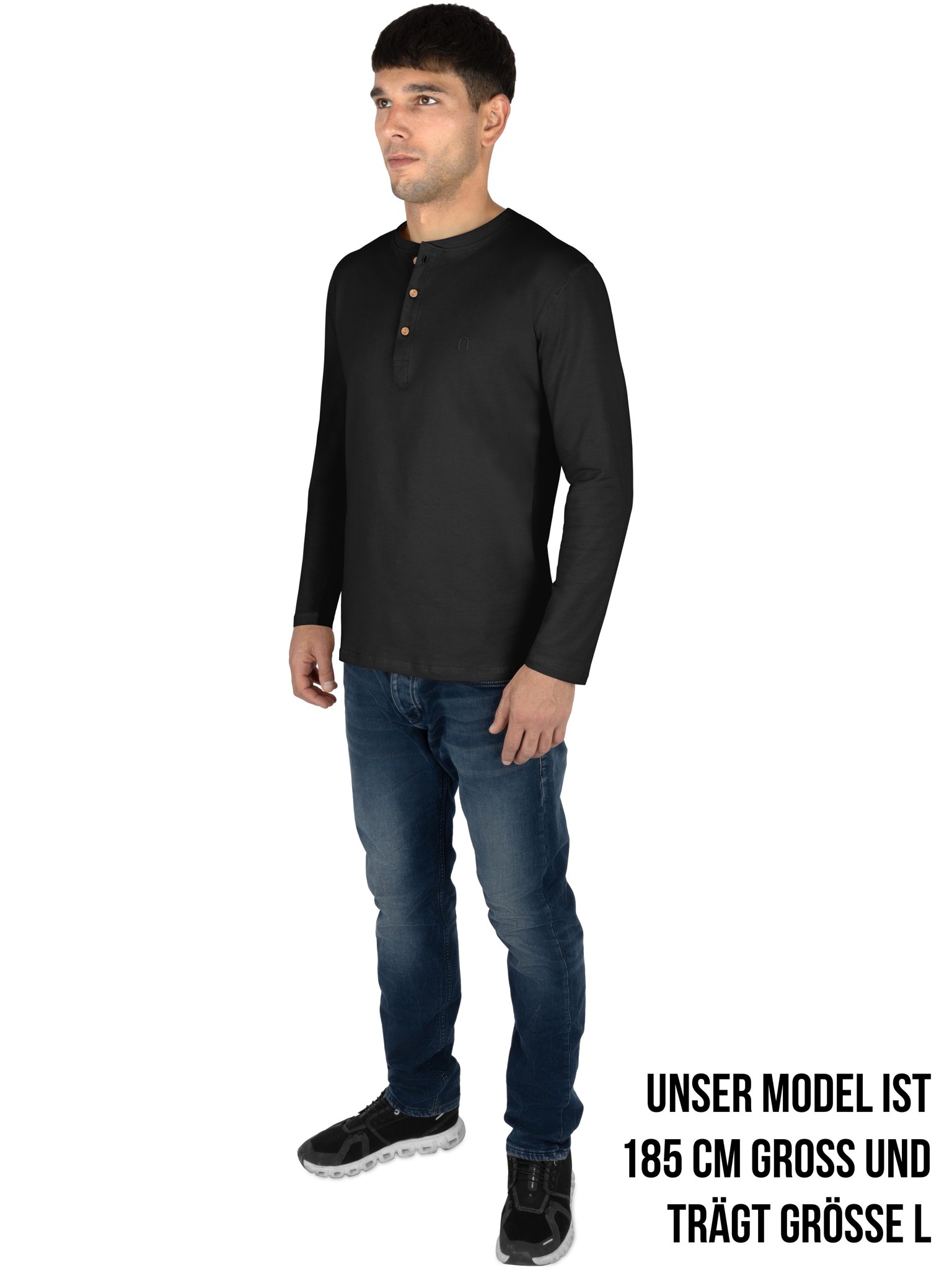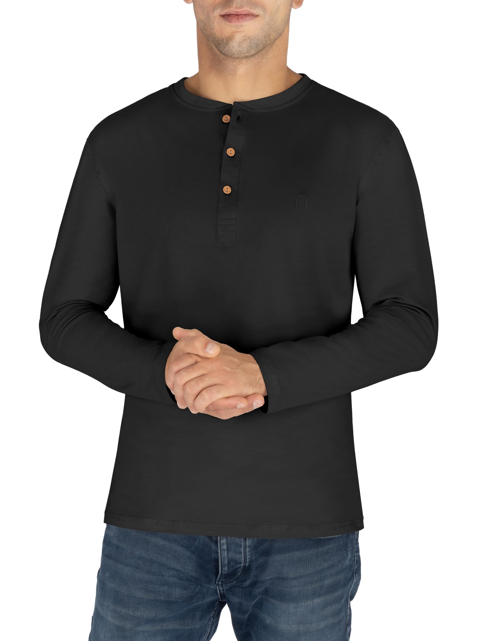 Das Normani Herren Langarmshirt "Neuville" besteht aus 95 % GOTS-zertifizierter Bio-Baumwolle und 5 % Elasthan. Es überzeugt durch seine hochwertige Stoffqualität und den zeitlosen Look. Die dezente Knopfleiste auf der Brust sorgt für flexible Tragemöglichkeiten - ob geschlossen für einen klassischen Auftritt oder leicht geöffnet für einen entspannten Stil. Mit seinem minimalistischen Design ist das Shirt vielseitig kombinierbar und kann deshalb sowohl im Alltag als auch zur Arbeit oder besonderen Anlässen getragen werden.