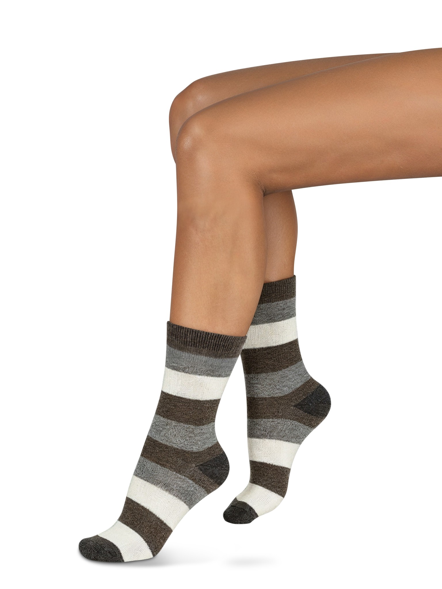 6 Paar Alpakasocken breitgestreift Beige/Beige/Anthrazit