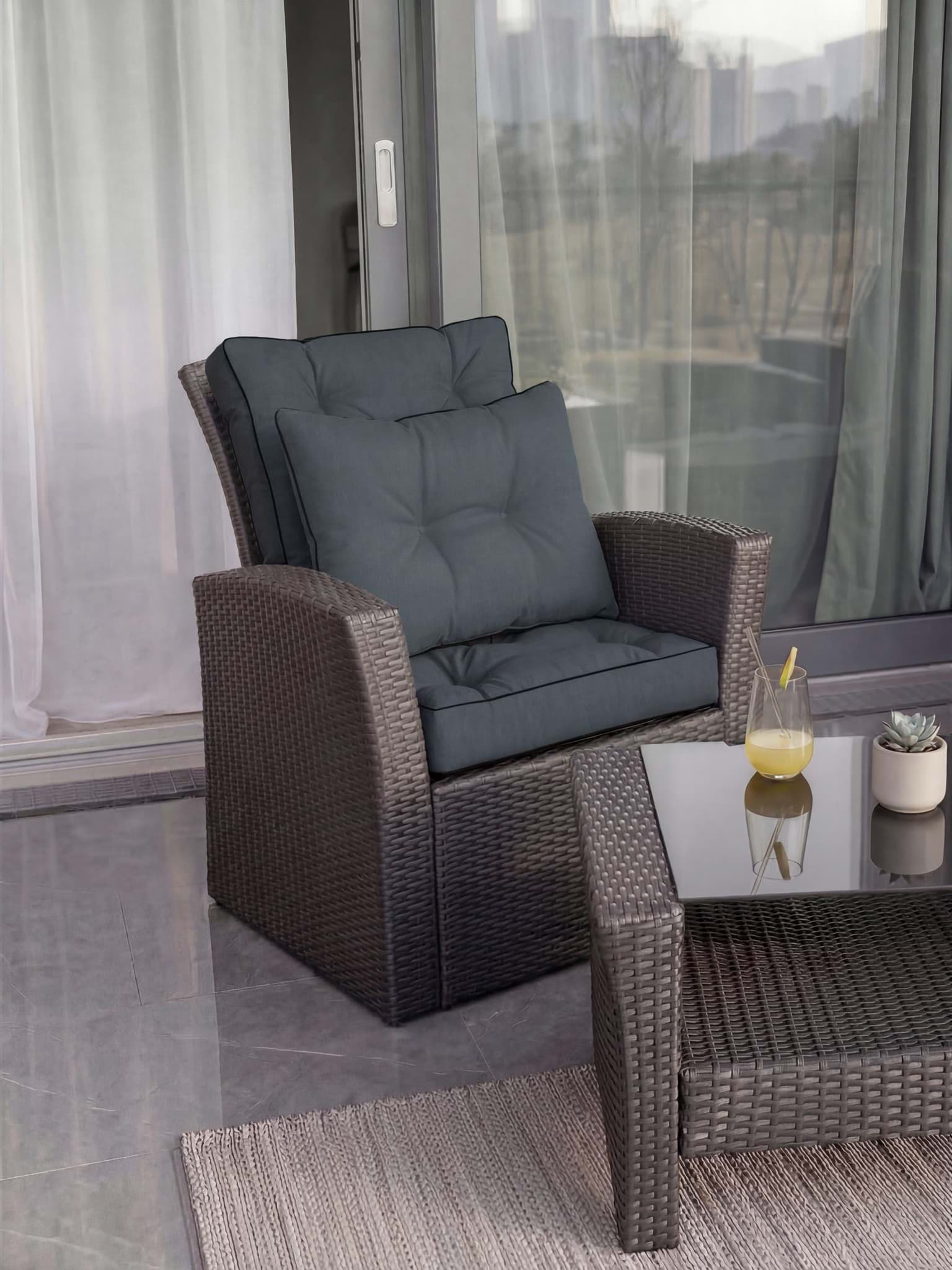 Das Sitzkissen (50 x 50 x 10 cm) bietet dank seiner 10 cm starken Polsterung eine besonders bequeme Sitzfläche. Das Rückenkissen (40 x 50 x 7 cm) unterstützt mit seiner 7 cm dicken Füllung angenehm den Rücken- und Lendenbereich. Beide Kissen sind wasserabweisend, hautfreundlich und formstabil. Das pflegeleichte Polyester-Material lässt sich einfach mit einem feuchten Tuch reinigen. Ideal für den Innen- und Außenbereich. Hergestellt in Europa – für kurze Transportwege und hohe Produktionsstandards.