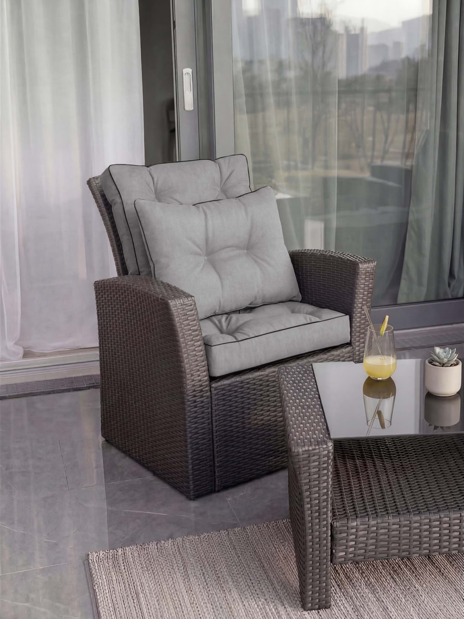Auflagen Set 2 Sitzkissen und 1 Rückenkissen „Valetta und Verdun“ Dunkelgrau