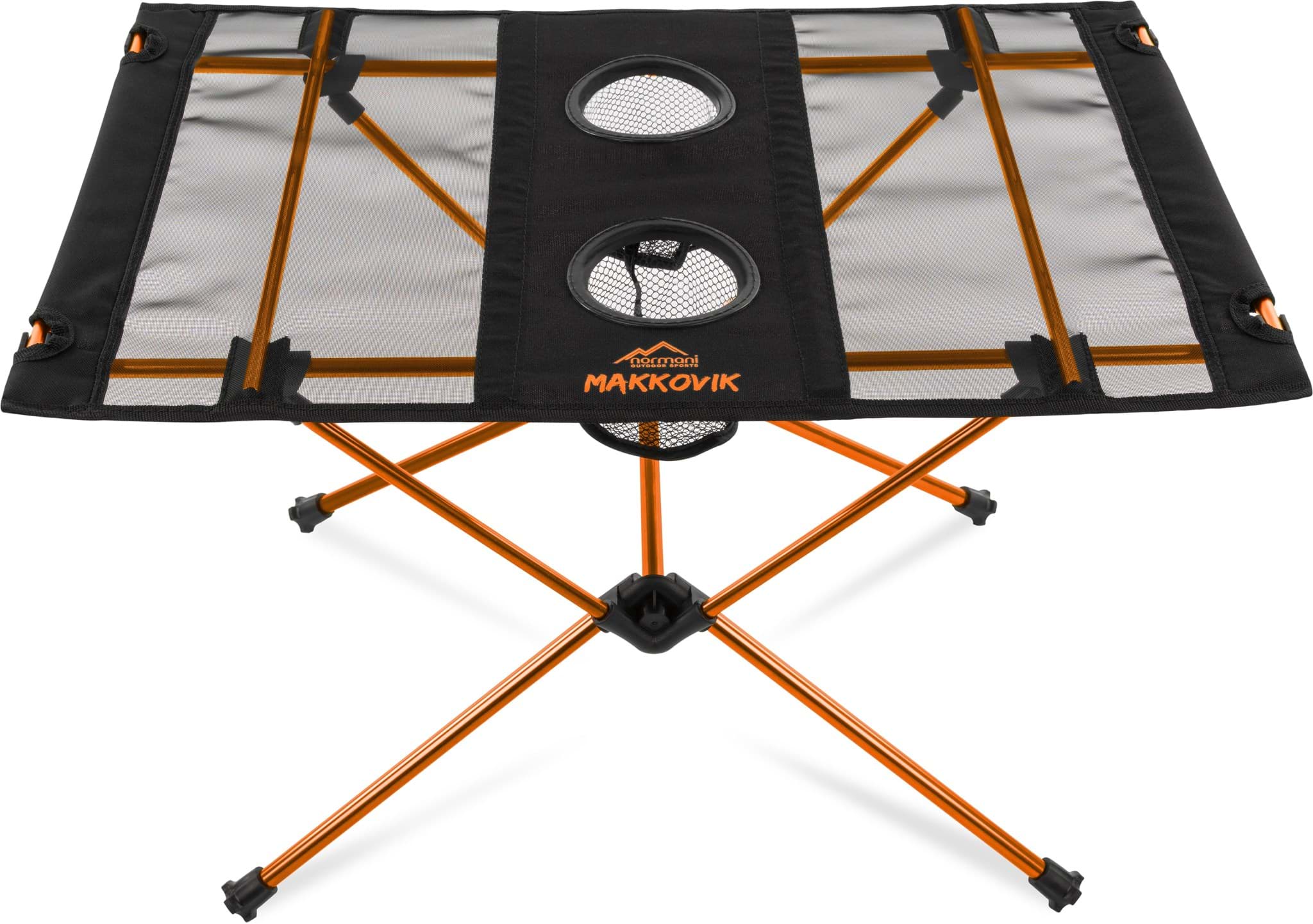 Der Campingtisch „Makkovik“ bietet die Möglichkeit in den entlegensten Ecken wie auf der Safari Reise tief im Okavango Delta auf einer der unendlich vielen weitläufigen Grasflächen eine Abstellfläche innerhalb weniger Sekunden zu erschaffen. Der Falttisch bietet mittags die Abstellmöglichkeit für die Kameratasche und abends nach einem langen Tag lassen sich auf der gespannten Tischoberfläche Mahlzeiten zubereiten und genüsslich verspeisen. Den gewohnten Komfort und die Bequemlichkeit von zu Hause auch in der Natur genießen. In der Tischmitte bieten 2 Netztaschen einen sicheren Platz für Getränke. Beim Schnabulieren haben zwei Leute genügend Platz, beim anschließenden Kartenspielen finden auch 4 Leute Platz. Durch die stabile Maschendecke und das strapazierfähige Aluminiumgestell können Gegenstände bis zu insgesamt 50 kg abgestellt werden. Mit unschlagbaren 592 Gramm nicht nur ultraleicht, sondern auch mit mega kompaktem Packmaß um den Campingtisch sogar im Tagesrucksack mitzunehmen. Auf spontanen Tagestrips, am Strand, Barbecue, Picknick im Stadtpark oder selbst auf ausgedehnten Wanderungen fällt der Tisch kaum ins Gewicht. Die flexible Aufbewahrungstasche mit Tragegriff lässt den Campingtisch verstauen. Auch im Bully, Fahrradpacktasche, Wohnwagen oder Wohnmobil verschwendet der Tisch keinen unnötigen Platz. Auch eine Alternative für den kleinen Balkon. Beim Angeln bietet der Tisch Platz für Köderboxen oder lässt darauf den Fisch direkt ausnehmen.