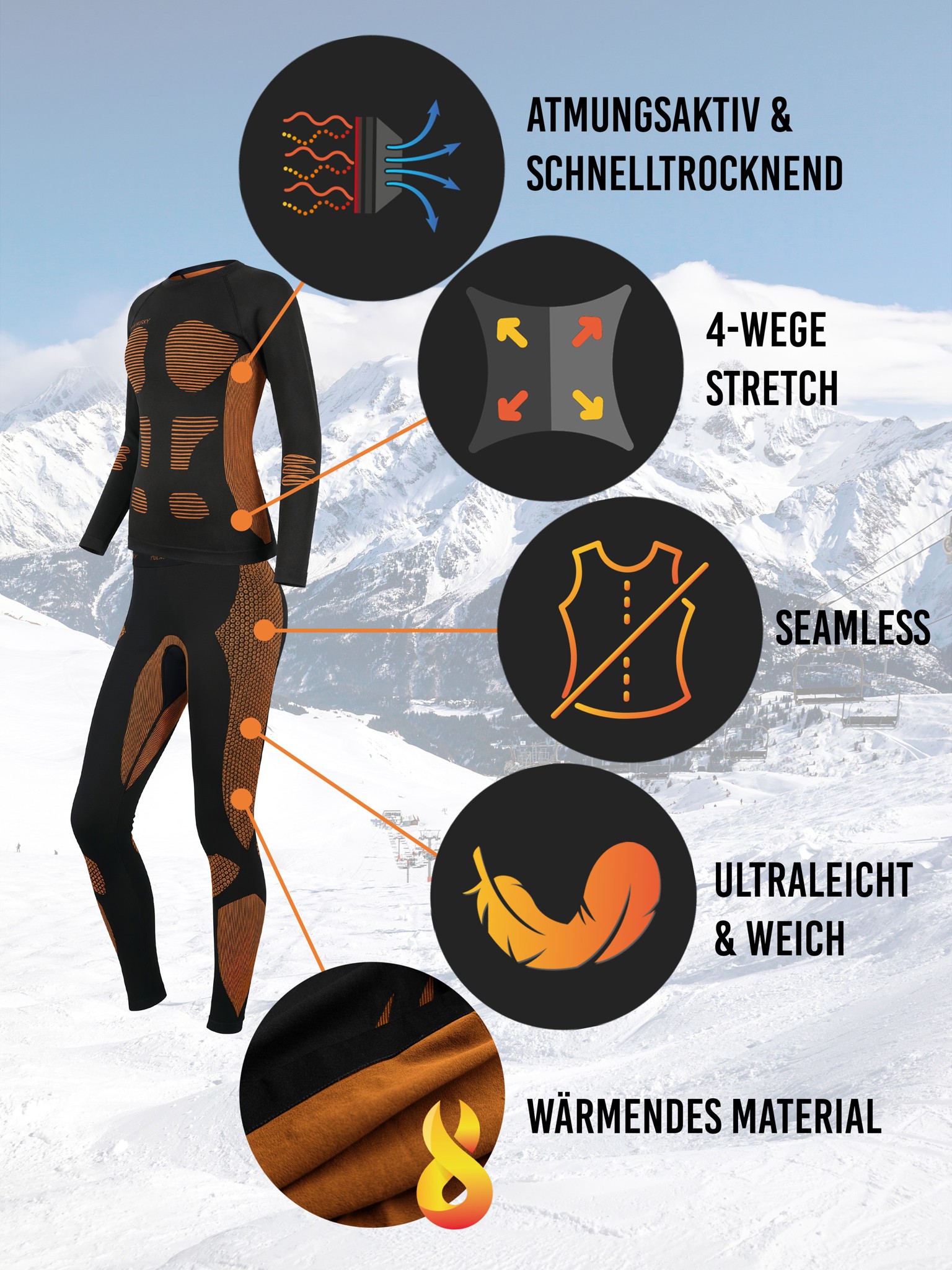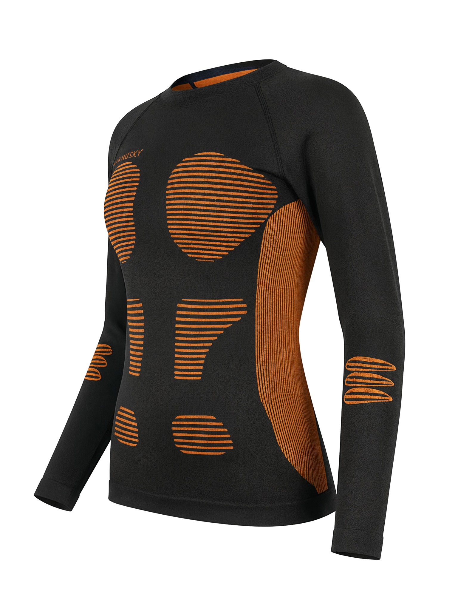 Damen Sport-Funktionsunterwäsche Set Hemd + Hose Schwarz/Orange