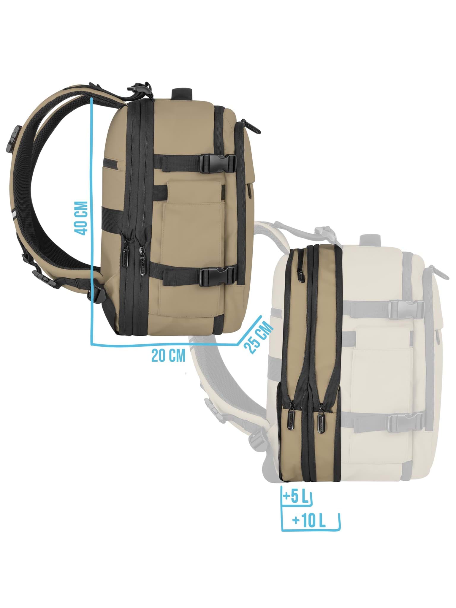 Erweiterbarer Handgepäck-Rucksack 20 Liter „Nikaho“ Beige