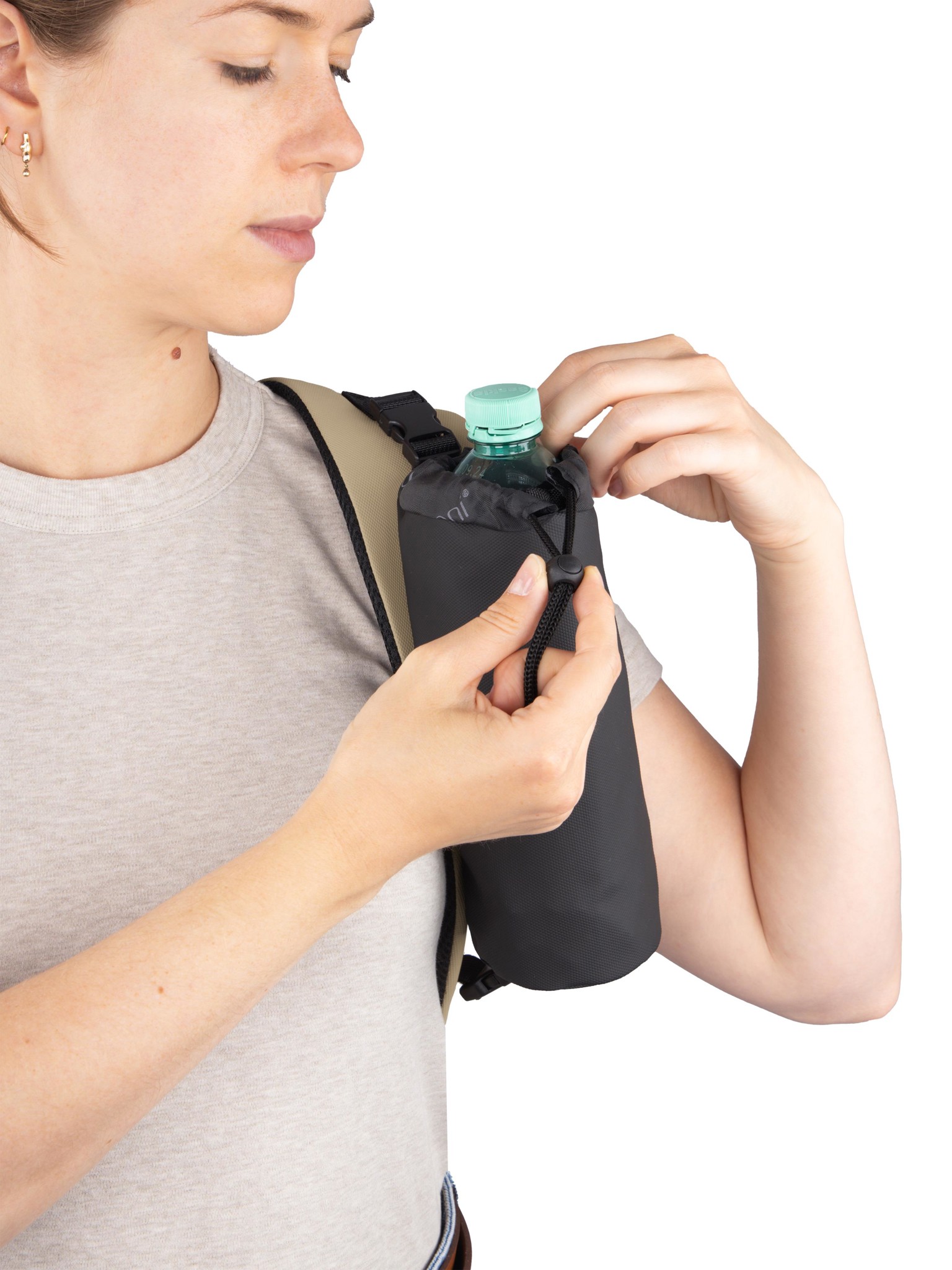 Mit einem verstellbaren Gurt lässt sich die "Nomi" Flaschentasche bequem auf der Brust oder Schulter tragen. Noch besser: Du kannst sie direkt am Schultergurt deines Nikaho Rucksacks fixieren – für noch mehr Bewegungsfreiheit.