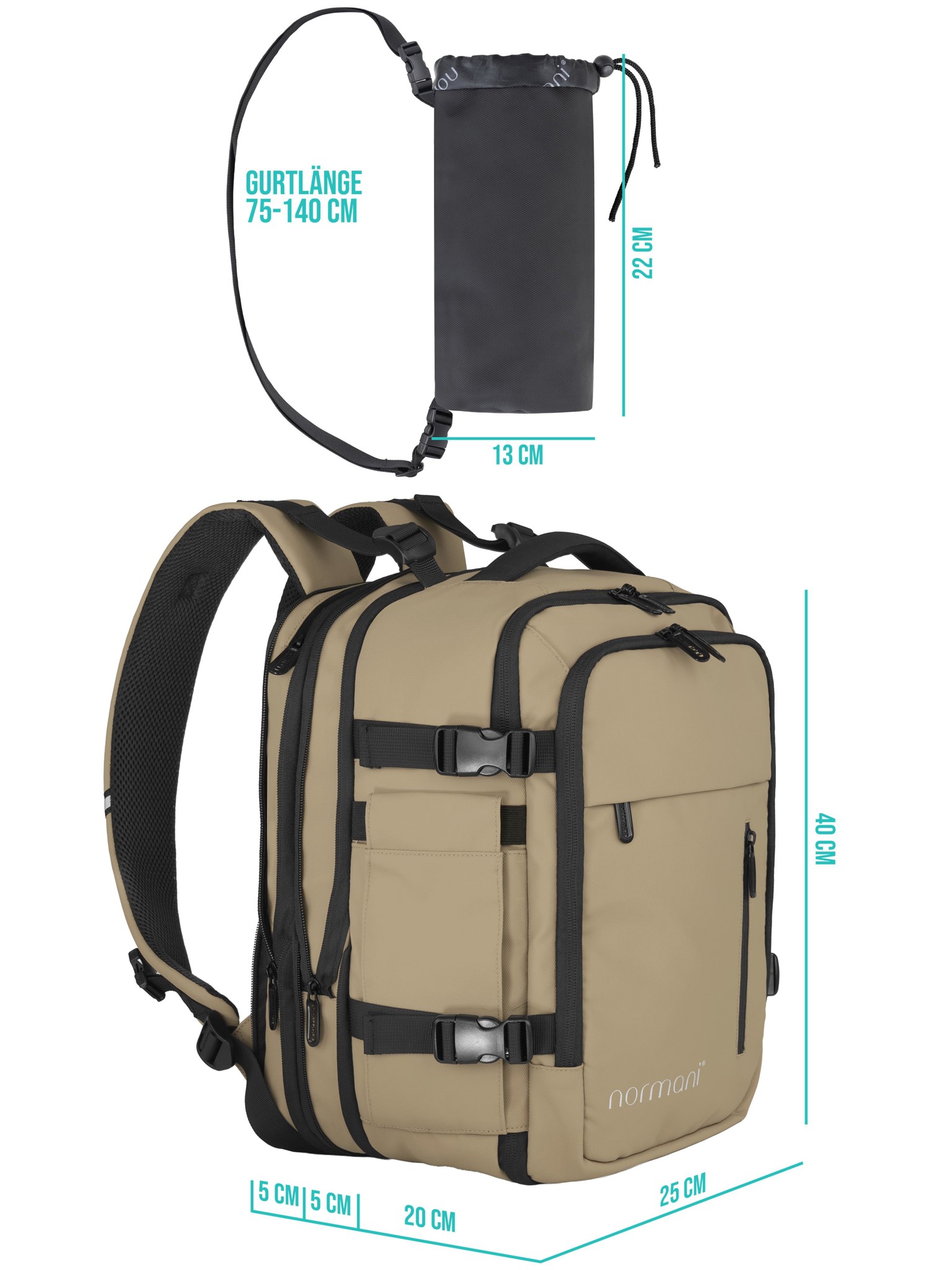Ob Städtetrip oder spontaner Wochenendausflug – der normani Handgepäck-Reise-Rucksack Set ist dein cleverer Begleiter für grenzenlose Freiheit über den Wolken. Entwickelt für Vielreisende, die keinen Zentimeter Platz verschenken wollen, vereint er Funktionalität, Komfort und ein durchdachtes Design. Dank zweier clever integrierter Reißverschlüsse lässt sich das Maß von 40 x 25 x 20 cm um zwei mal 5 cm (und bis zu 10 Litern) erweitern – perfekt abgestimmt auf die Handgepäckvorgaben von Ryanair, Wizzair, Eurowings, KLM, Turkish Airlines, Lufthansa, Emirates und vielen weiteren Airlines.