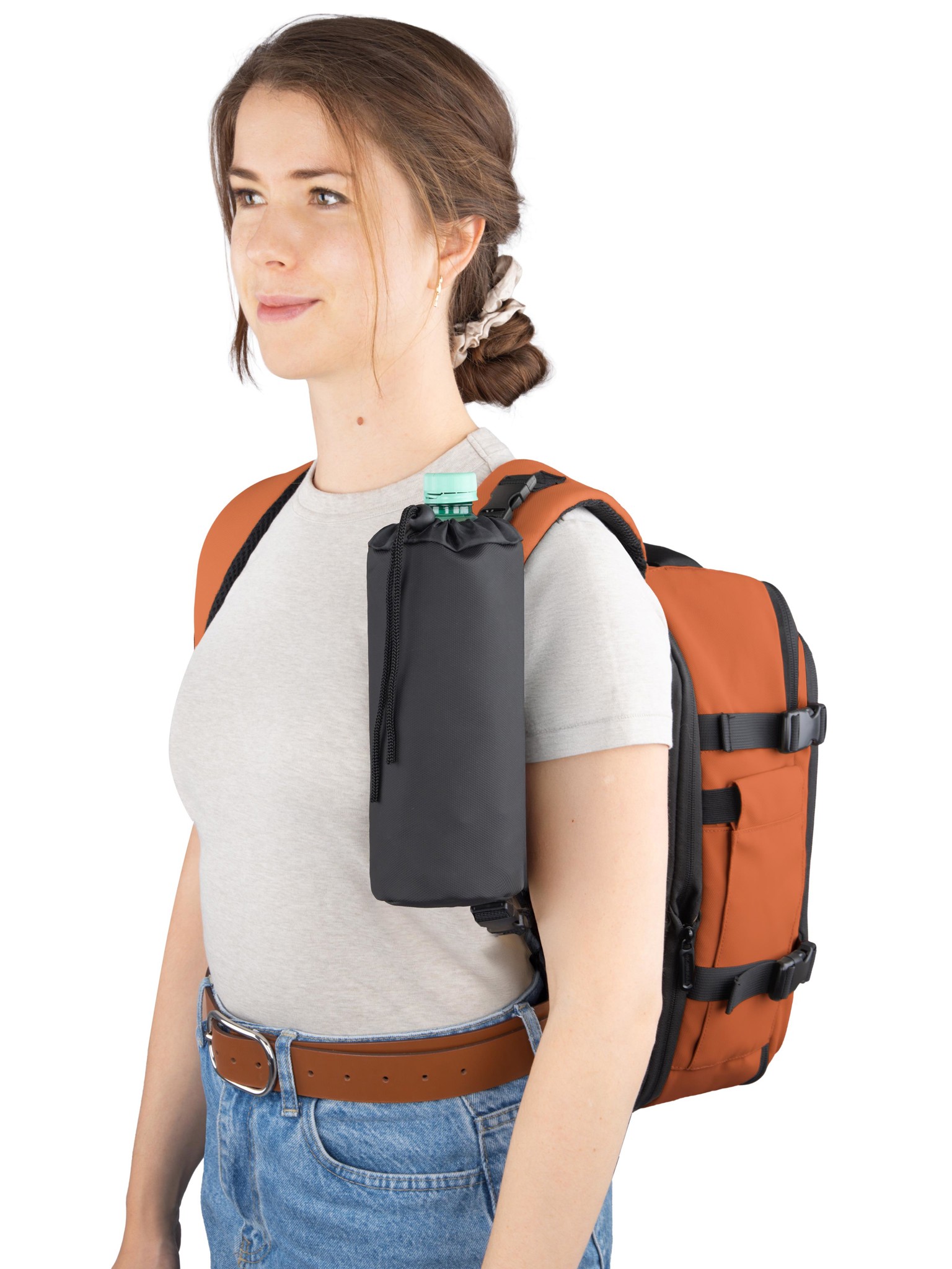 Erweiterbarer Handgepäck-Rucksack mit Flaschentasche Schwarz