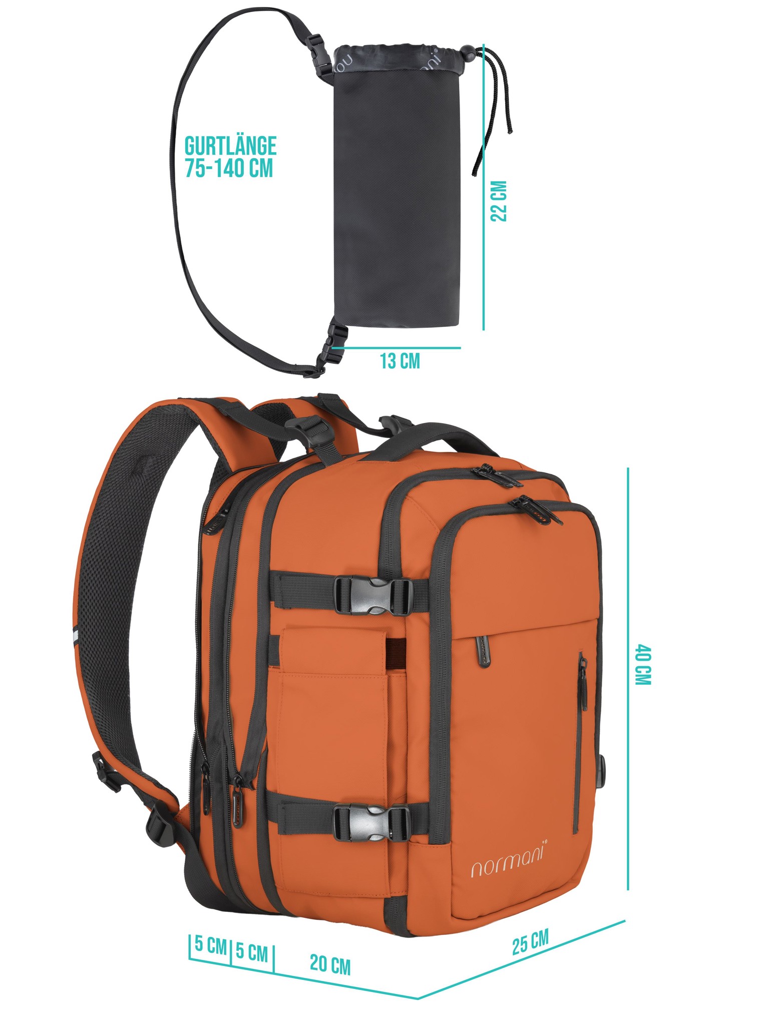 Ob Städtetrip oder spontaner Wochenendausflug – der normani Handgepäck-Reise-Rucksack Set ist dein cleverer Begleiter für grenzenlose Freiheit über den Wolken. Entwickelt für Vielreisende, die keinen Zentimeter Platz verschenken wollen, vereint er Funktionalität, Komfort und ein durchdachtes Design. Dank zweier clever integrierter Reißverschlüsse lässt sich das Maß von 40 x 25 x 20 cm um zwei mal 5 cm (und bis zu 10 Litern) erweitern – perfekt abgestimmt auf die Handgepäckvorgaben von Ryanair, Wizzair, Eurowings, KLM, Turkish Airlines, Lufthansa, Emirates und vielen weiteren Airlines.
