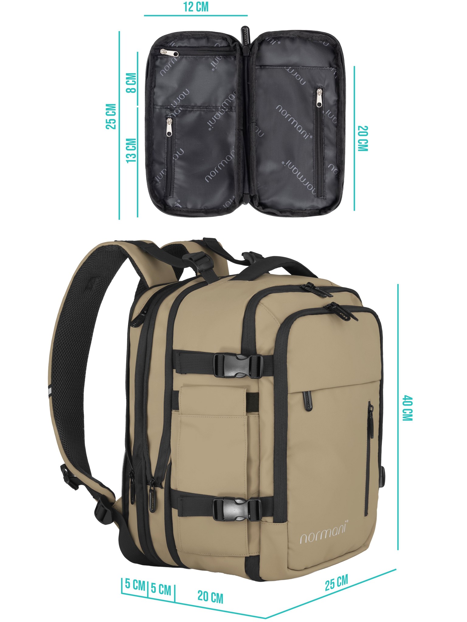 Erweiterbarer Handgepäck-Rucksack mit Reisepass Brusttasche Oliv