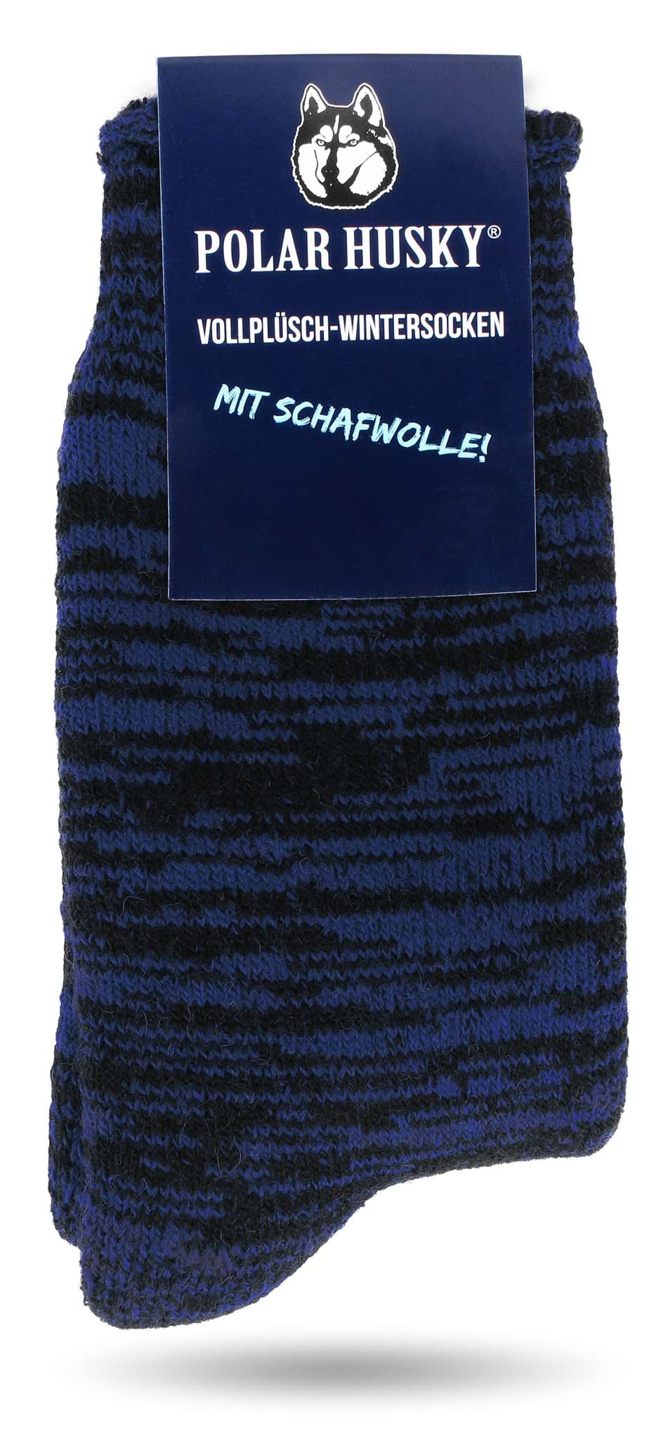 Farbige Vollplüsch-Socken mit Wolle Hellblau/Schwarz