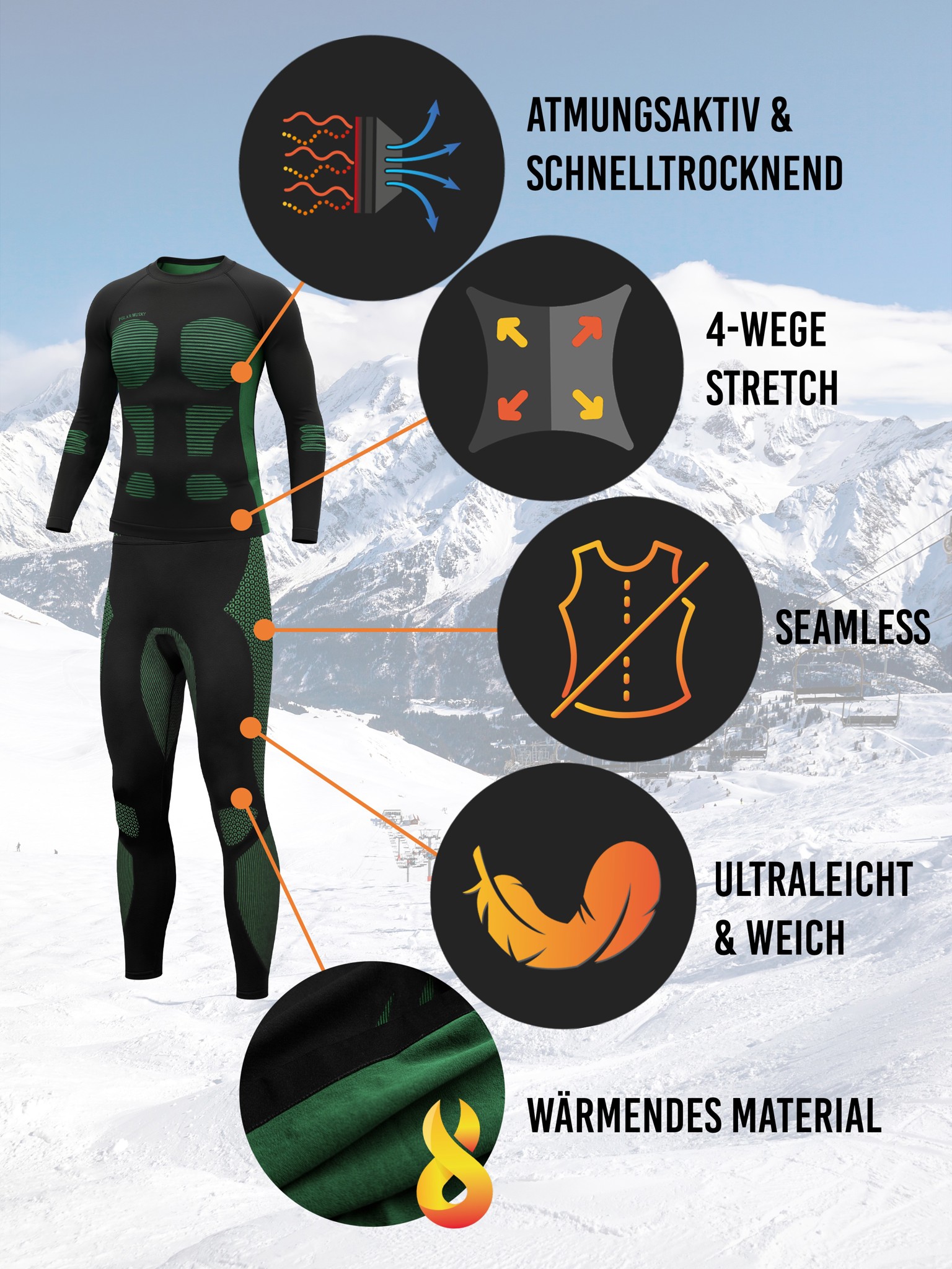 Herren Sport-Funktionsunterwäsche Set Hemd + Hose Schwarz/Grün