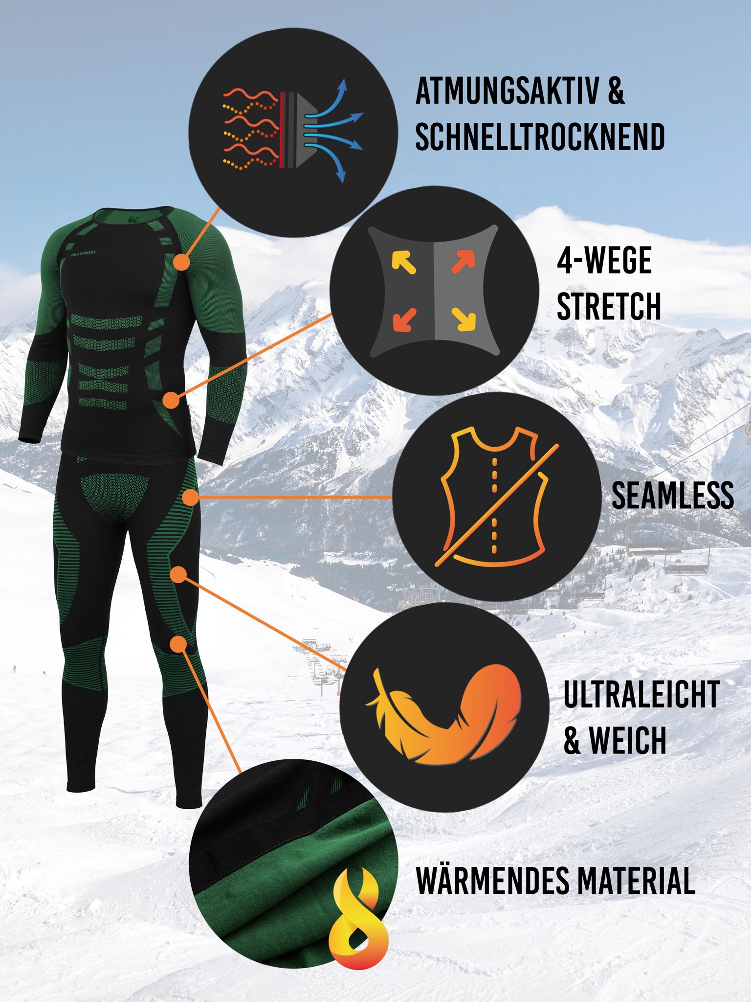 Herren Sport-Funktionsunterwäsche Set Hemd + Hose Schwarz/Grün
