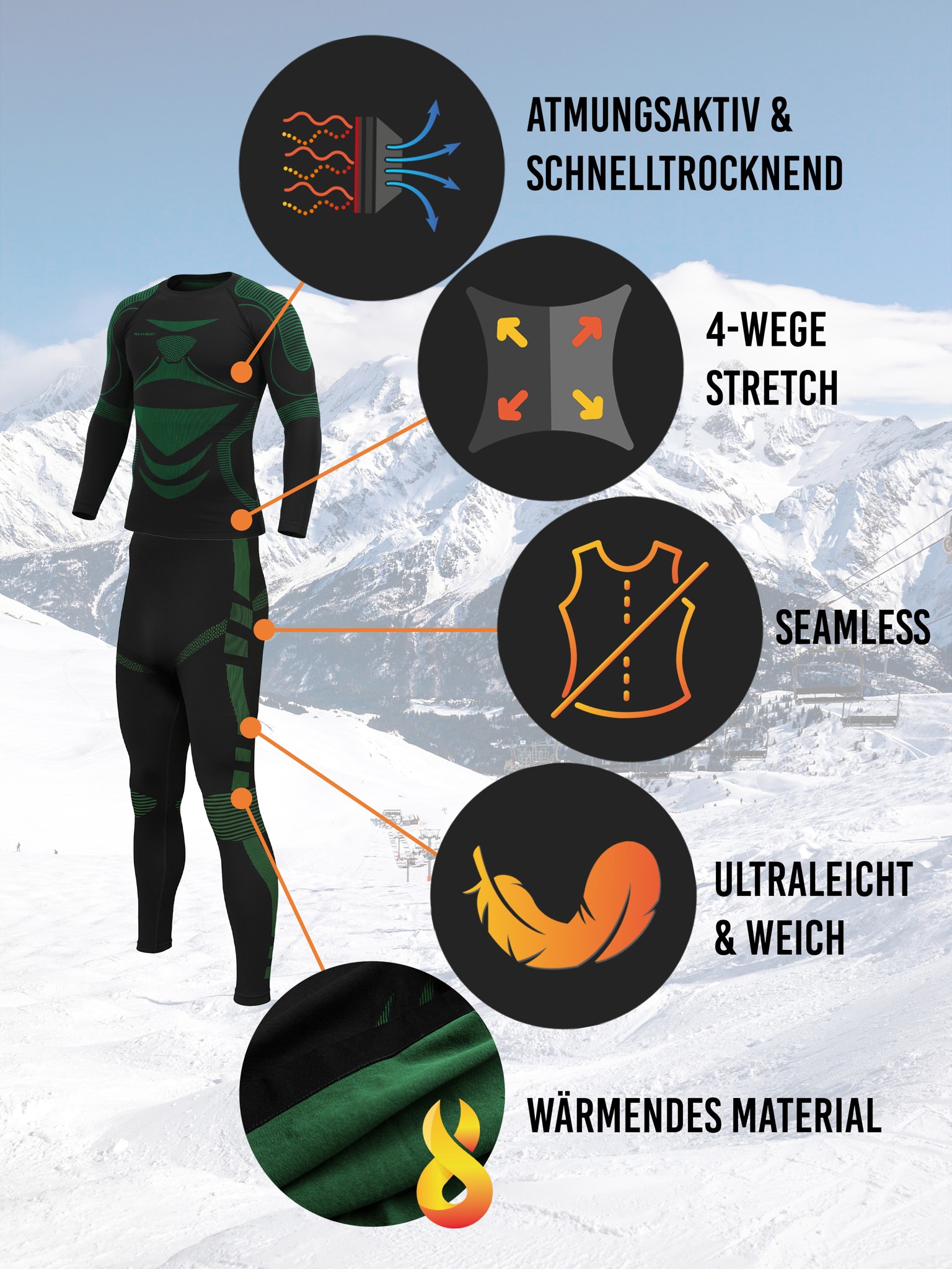Herren Sport-Funktionsunterwäsche Set Hemd + Hose Grün/Schwarz