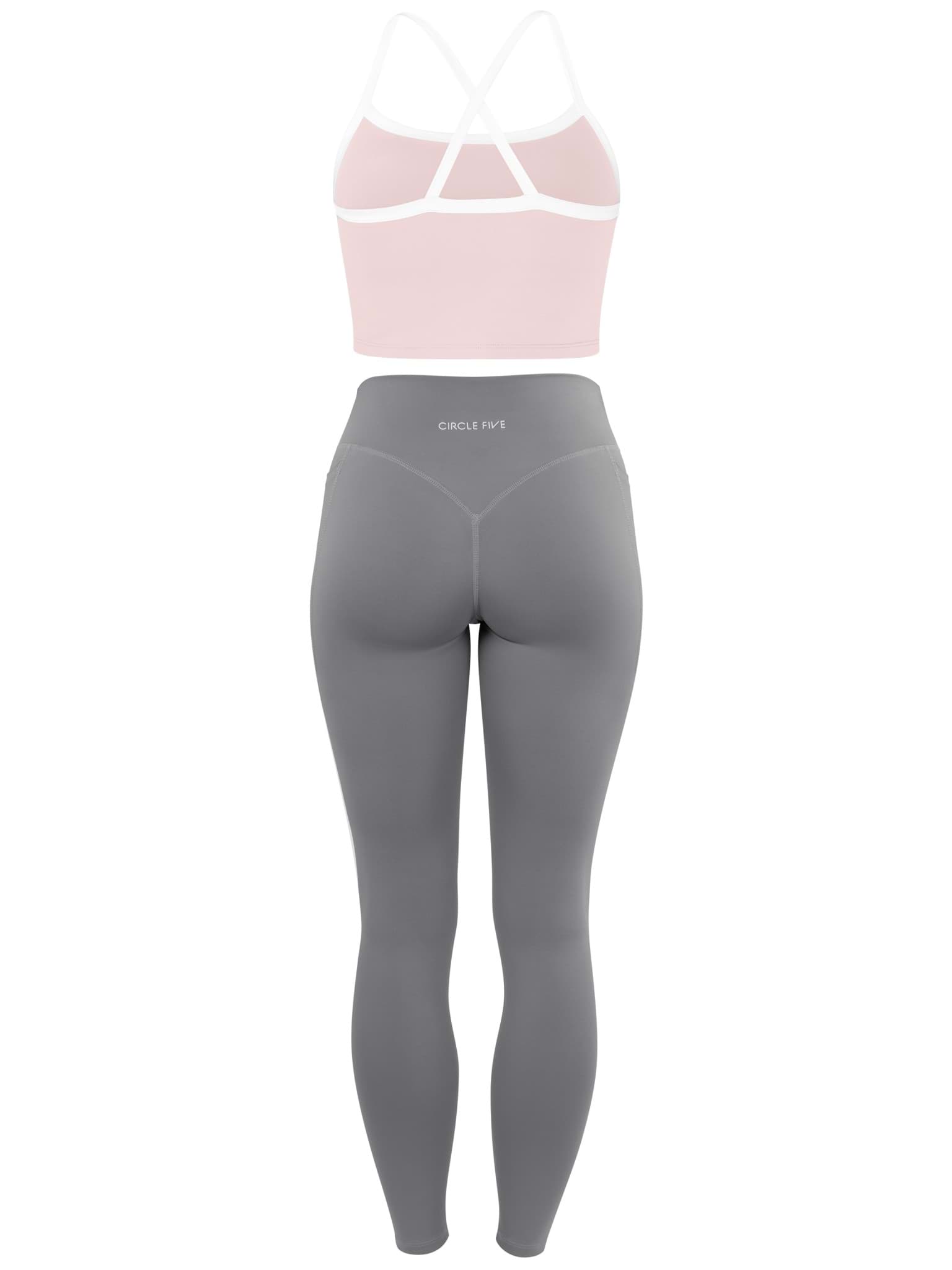 High Waist Sport Set (Leggings mit Taschen & Sporttop mit integriertem BH) Weiß/Anthrazit