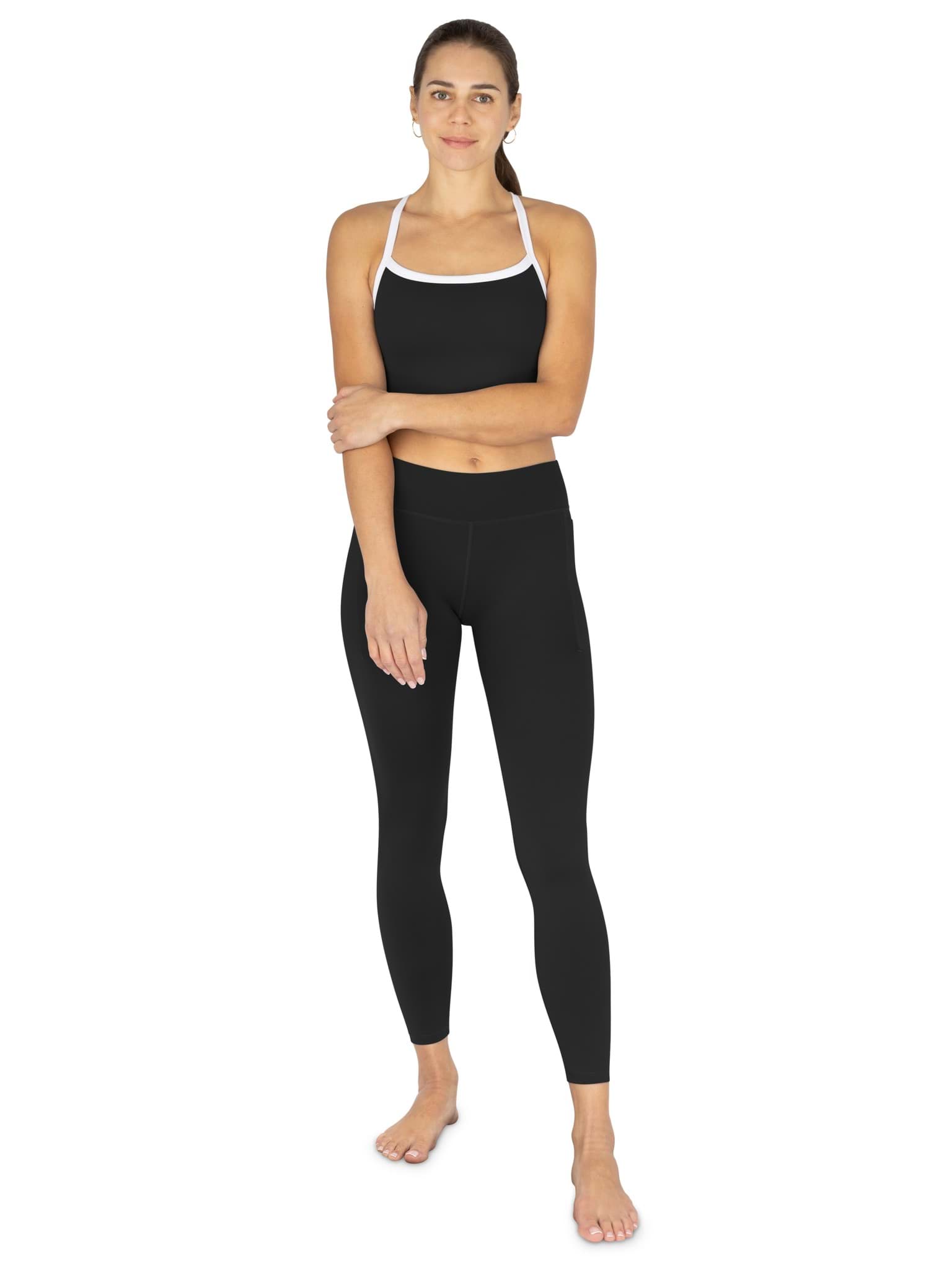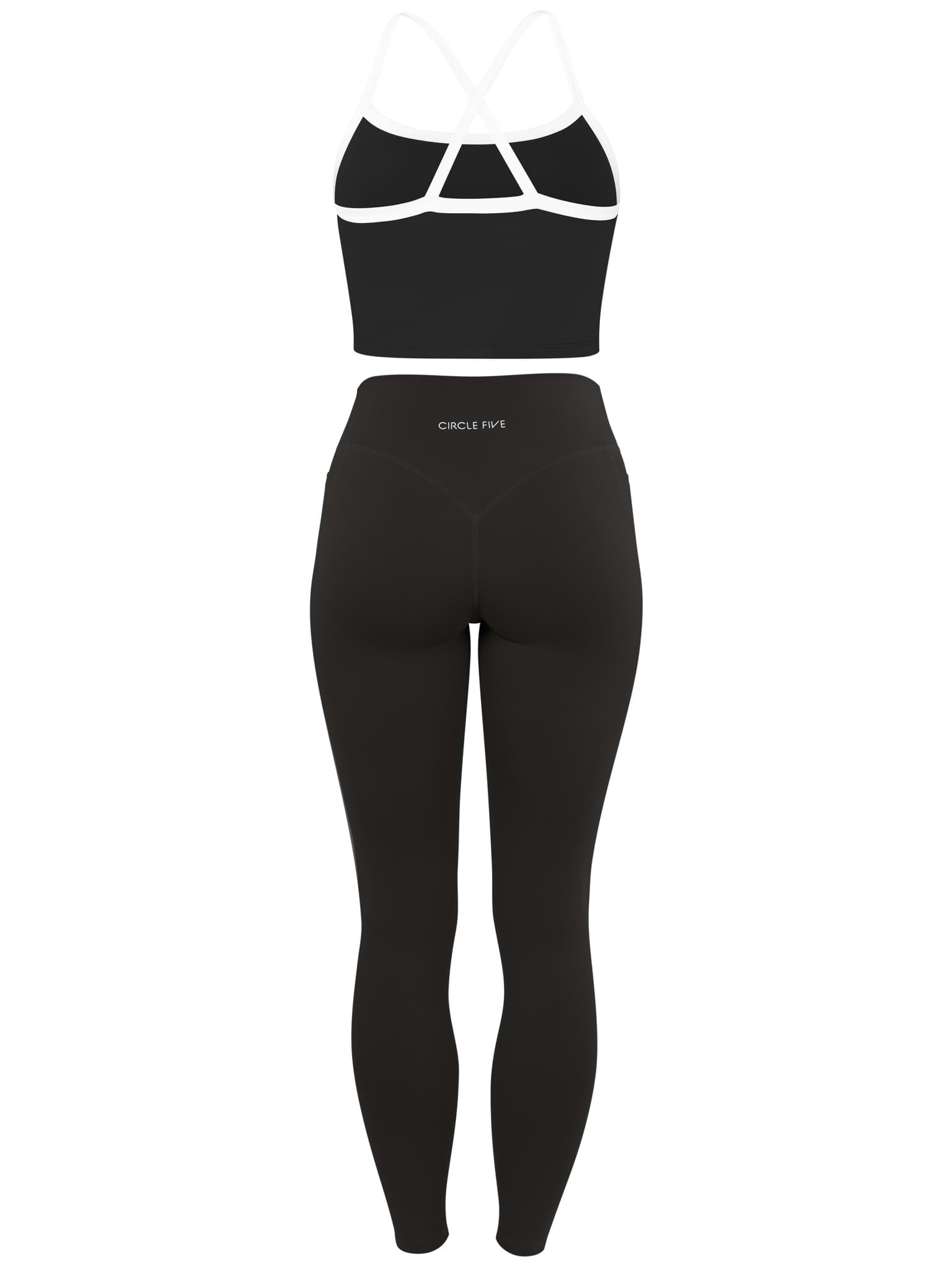 High Waist Sport Set (Leggings mit Taschen & Sporttop mit integriertem BH) Weiß/Schwarz
