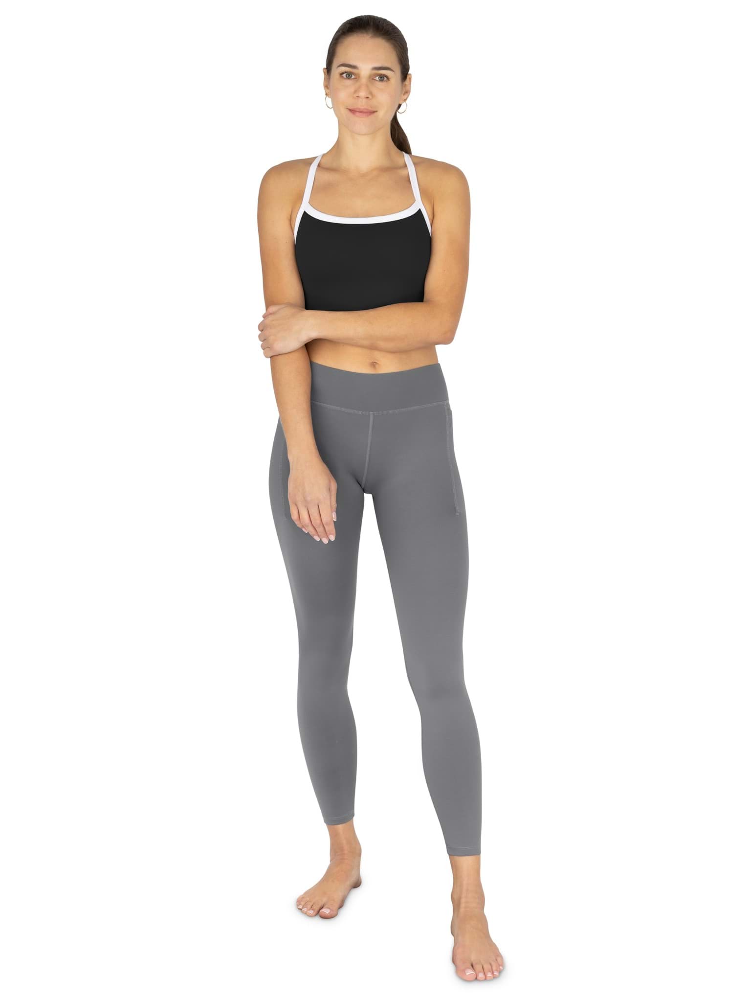 High Waist Sport Set (Leggings mit Taschen & Sporttop mit integriertem BH) Anthrazit/Schwarz