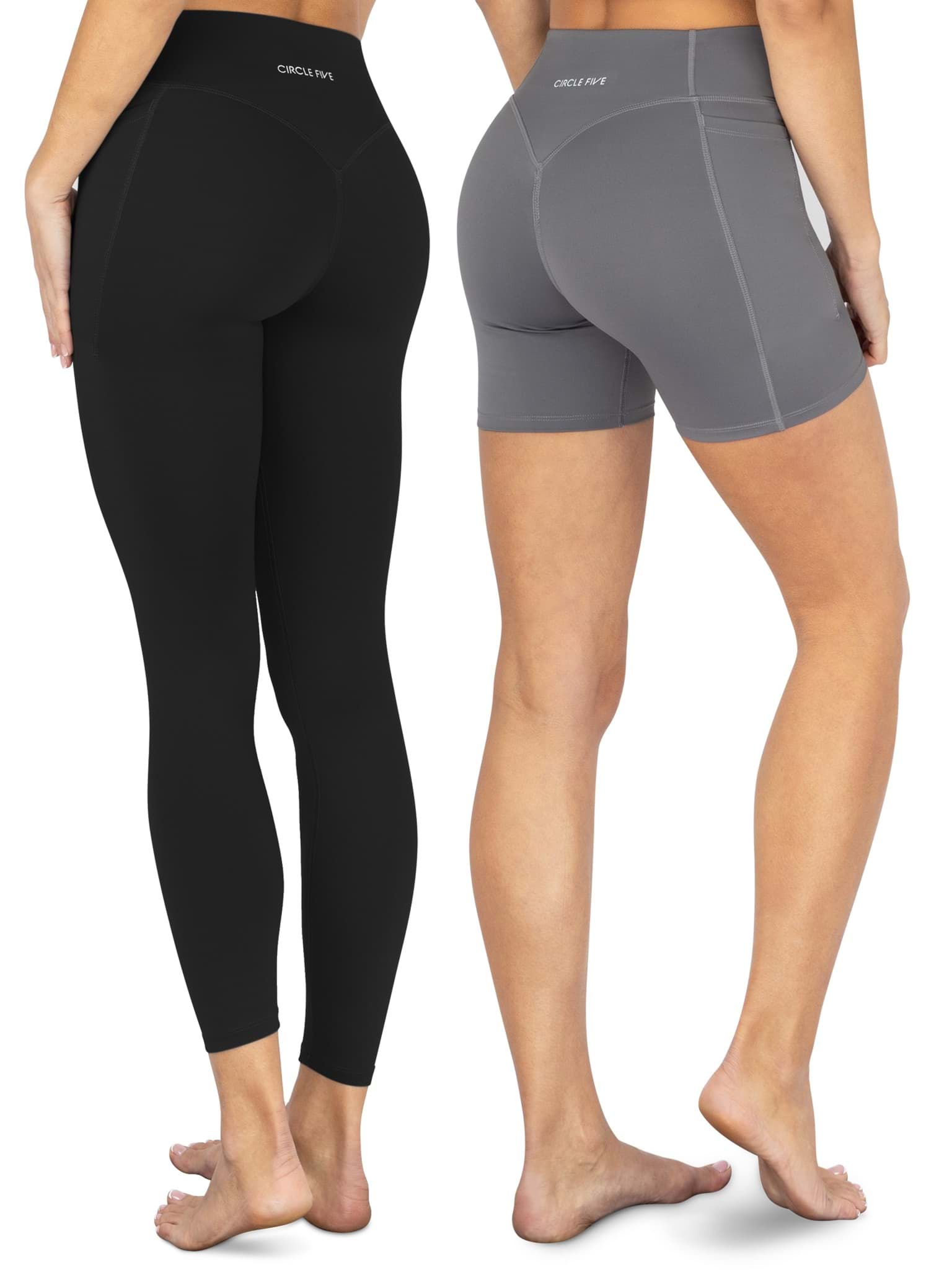 High Waist Sport Set (Radlershorts und Leggings mit Taschen) Schwarz/Anthrazit