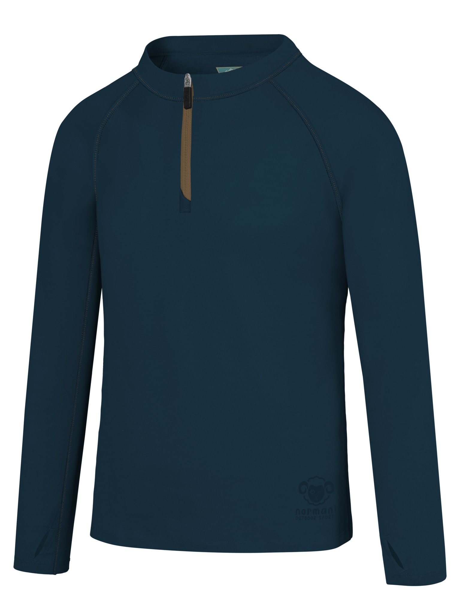 Kinder Merino Langarm mit 1/4 Zipper „Nyapari“ Blau