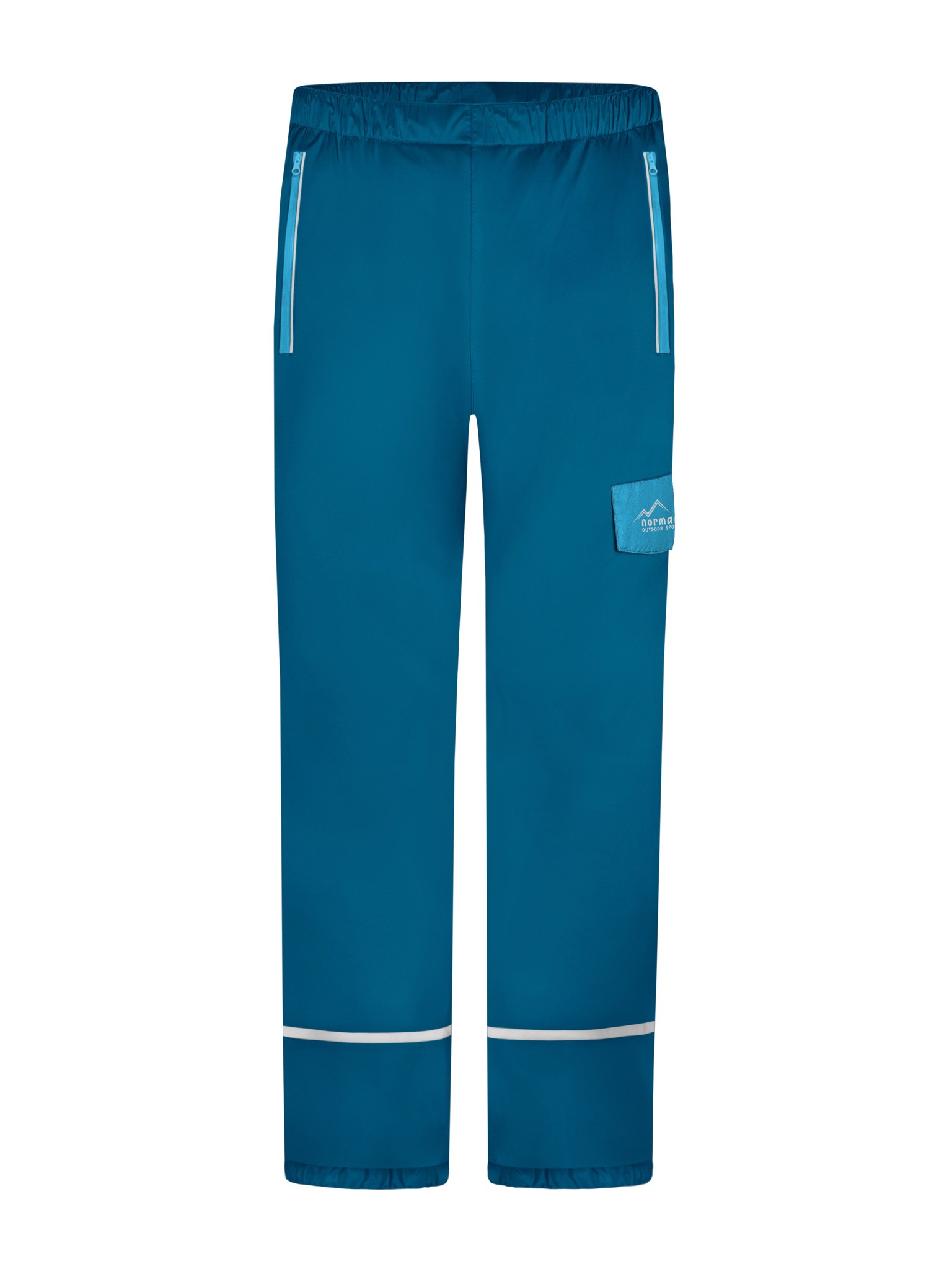 Die Kinder Regenhose „Shalalth“ überzeugt durch Funktionalität, Nachhaltigkeit und Komfort in einem farbenfrohen, kindgerechten Design. Das Obermaterial besteht aus 100 % recyceltem Polyester, während das Innenmaterial aus 100 % recyceltem 50D Polyester gefertigt wurde. Für zusätzliche Wärme sorgt eine Füllung aus 100 % recyceltem Polyester mit einer Grammatur von 60 g/m², die eine angenehme Isolation bei niedrigen Temperaturen bietet. Dank der Membran aus 100 % Polyurethan und vollständig verschweißten Nähten verfügt die Regenhose über eine hohe Wassersäule von 6.000 mm und eine Atmungsaktivität von 3.000 g/m²/24h. Diese Eigenschaften verhindern nicht nur das Eindringen von Wasser, sondern sorgen auch dafür, dass Feuchtigkeit und Wärme effektiv nach außen abgeleitet werden, wodurch Hitzestaus vermieden werden und ein angenehmes Trageklima entsteht. Hochwertige, wasserdichte YKK-Markenreißverschlüsse an den Seitentaschen bieten einen sicheren Ort für gefundene Schätze oder Wertgegenstände, während die seitliche Pattentasche zusätzlichen Stauraum bietet und gleichzeitig als Packtasche dient, in der die Hose komprimiert und platzsparend verstaut werden kann. Für mehr Sicherheit im Straßenverkehr sorgen Markenreflektoren von „3M™ Scotchlite™ Reflective Material“, die an den Reißverschlusstaschen, der seitlichen Patte und umlaufend an beiden Beinen angebracht wurden. Diese Reflektoren erleichtern das frühzeitige Erkennen des Kindes bei Dämmerung und Dunkelheit und erhöhen dadurch die Sicherheit. Der Hüftbund lässt sich im Inneren durch Knöpfe individuell anpassen, und in Kombination mit seiner Elastizität sowie den elastischen Beinöffnungen wird ein optimaler Sitz bei gleichzeitiger Bewegungsfreiheit gewährleistet. Ein elastischer Fußsteg, der individuell durch Knöpfe eingestellt oder vollständig entfernt werden kann, verhindert zudem ein Hochrutschen der Hose und sorgt dafür, dass sie immer perfekt sitzt, ohne beim Spielen einzuschränken. Das farbenfrohe Design bringt schließlich Abwechslung und Freude in die nasse, graue Jahreszeit und macht die Regenhose „Shalalth“ zu einem zuverlässigen Begleiter für jedes Wetter.