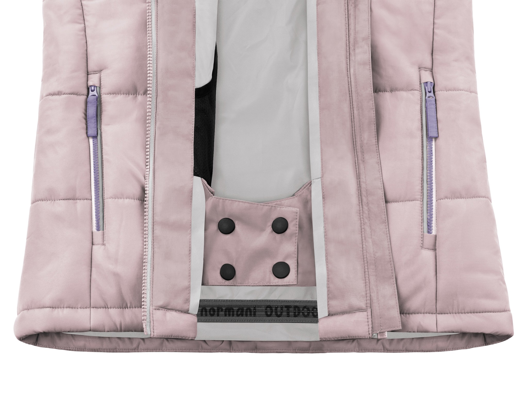 Für optimale Sichtbarkeit und Sicherheit sorgen reflektierenden Elemente auf der Jacke. Vier Reflektoren auf der Frontseite, je ein Reflektor an jedem Arm und auf der Rückseite gewährleisten, dass Ihr Kind auch bei Dämmerung gut sichtbar ist. Die Ärmelbündchen mit Daumenloch schützen vor kaltem Wind, und der Schneefang im Inneren verhindert das Eindringen von Schnee, selbst bei Stürzen. Die Jacke lässt sich individuell anpassen, dank eines Kordelzugs an der Hüfte. Auch die Armöffnungen lassen sich mittels eines Klettverschlusses nach Belieben verstellen. Eine praktische Netztasche im Inneren bietet Platz für die Skibrille, und das farbenfrohe, zweifarbige Design der Kinderjacke macht sie zu einem echten Hingucker auf der Piste.