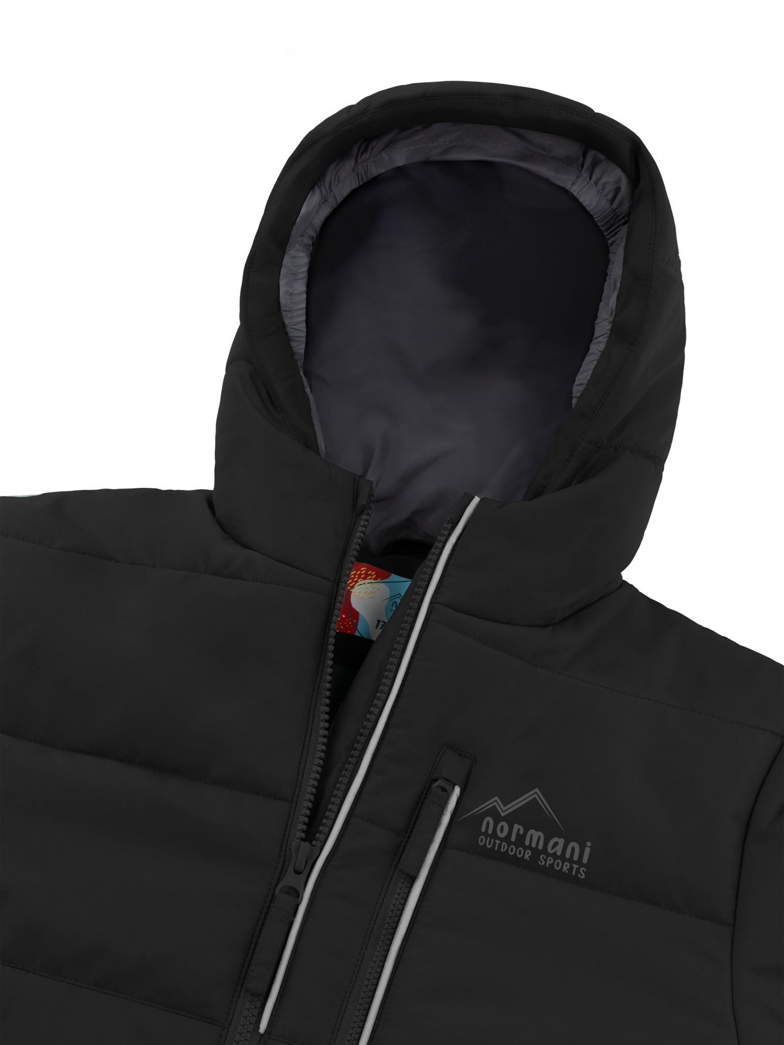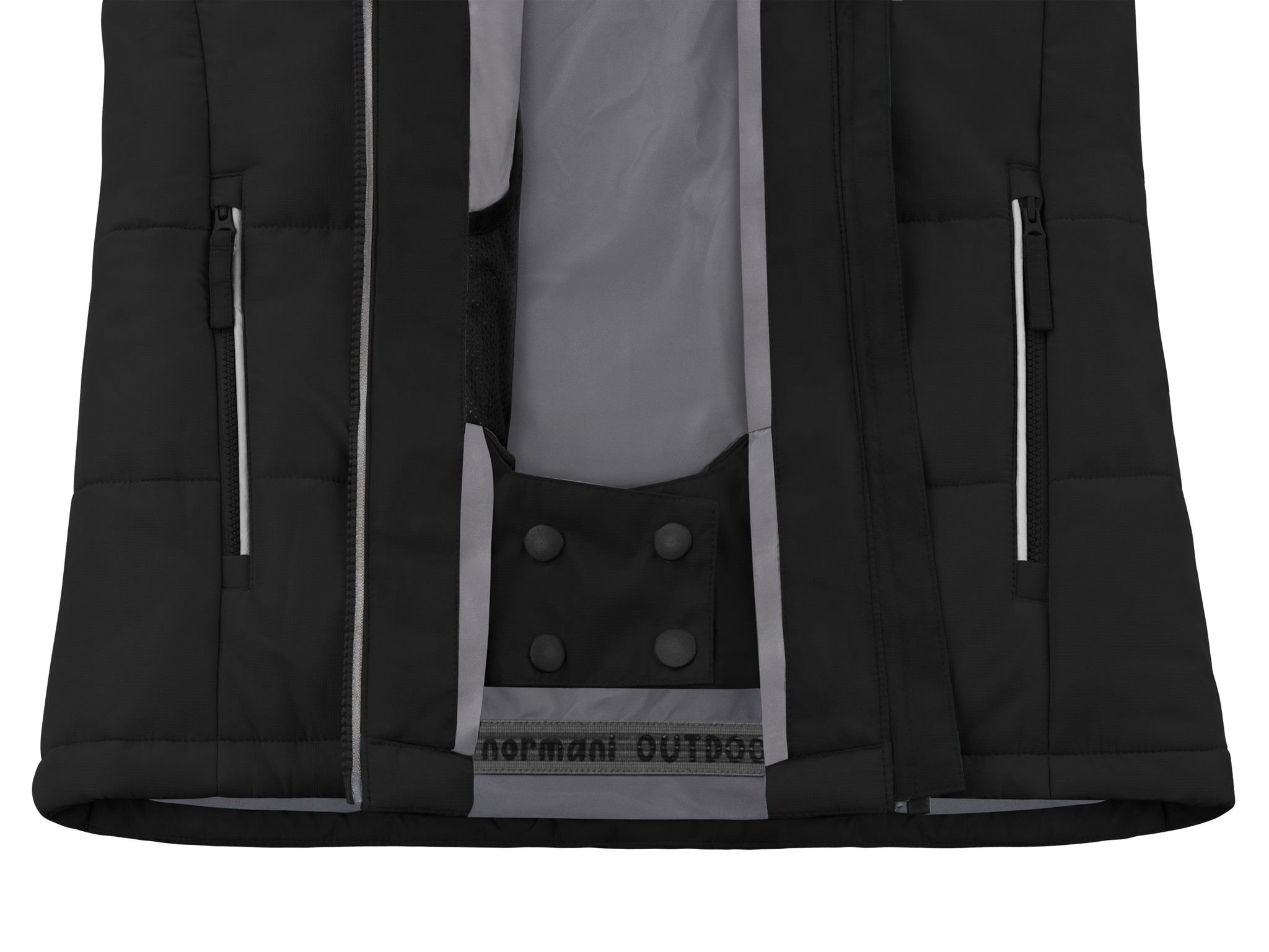Für optimale Sichtbarkeit und Sicherheit sorgen reflektierenden Elemente auf der Jacke. Vier Reflektoren auf der Frontseite, je ein Reflektor an jedem Arm und auf der Rückseite gewährleisten, dass Ihr Kind auch bei Dämmerung gut sichtbar ist. Die Ärmelbündchen mit Daumenloch schützen vor kaltem Wind, und der Schneefang im Inneren verhindert das Eindringen von Schnee, selbst bei Stürzen. Die Jacke lässt sich individuell anpassen, dank eines Kordelzugs an der Hüfte. Auch die Armöffnungen lassen sich mittels eines Klettverschlusses nach Belieben verstellen. Eine praktische Netztasche im Inneren bietet Platz für die Skibrille, und das farbenfrohe, zweifarbige Design der Kinderjacke macht sie zu einem echten Hingucker auf der Piste.