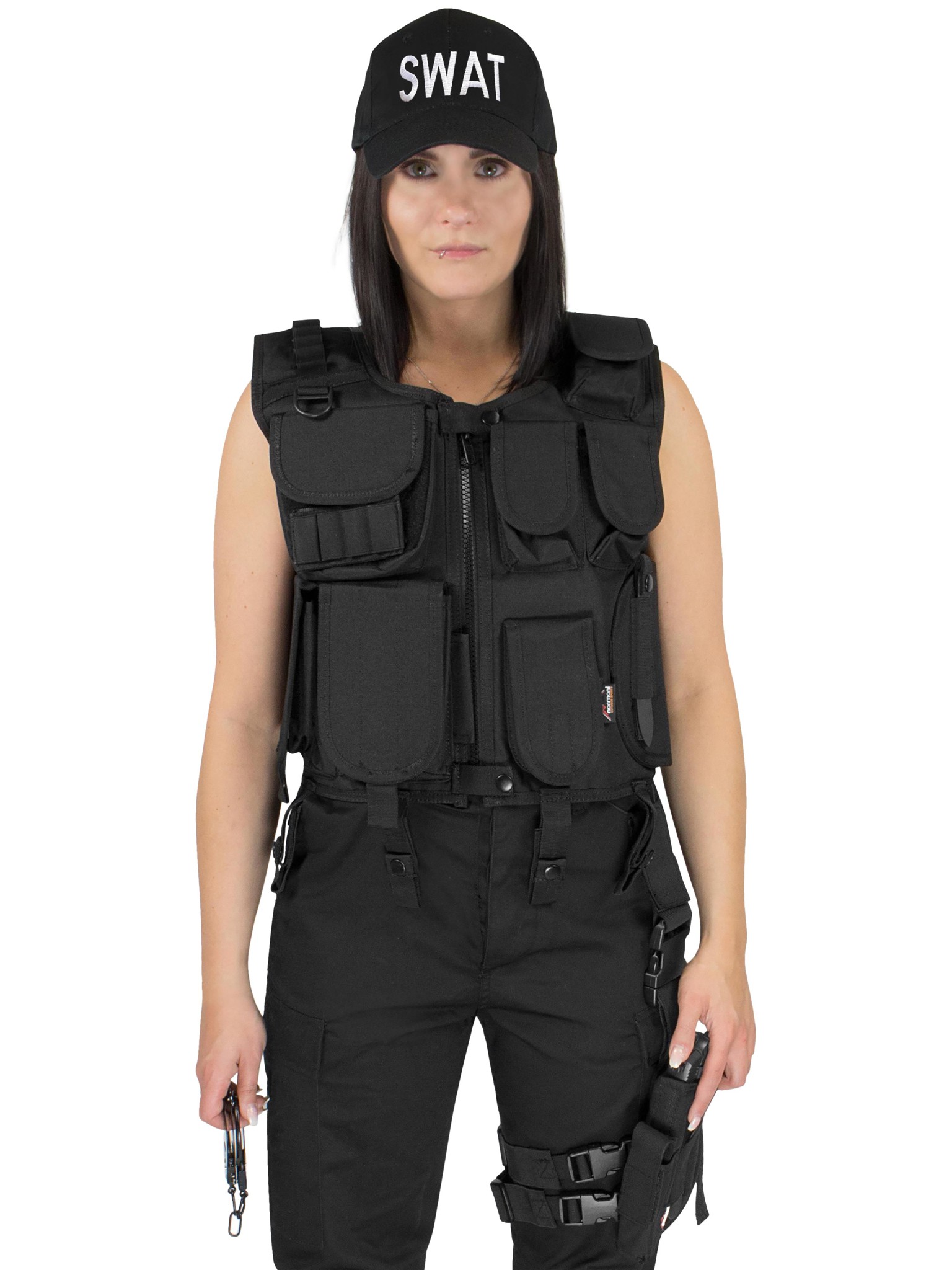 Police Kostüm bestehend aus Weste, Patch, Holster, Cap und Handschellen SWAT