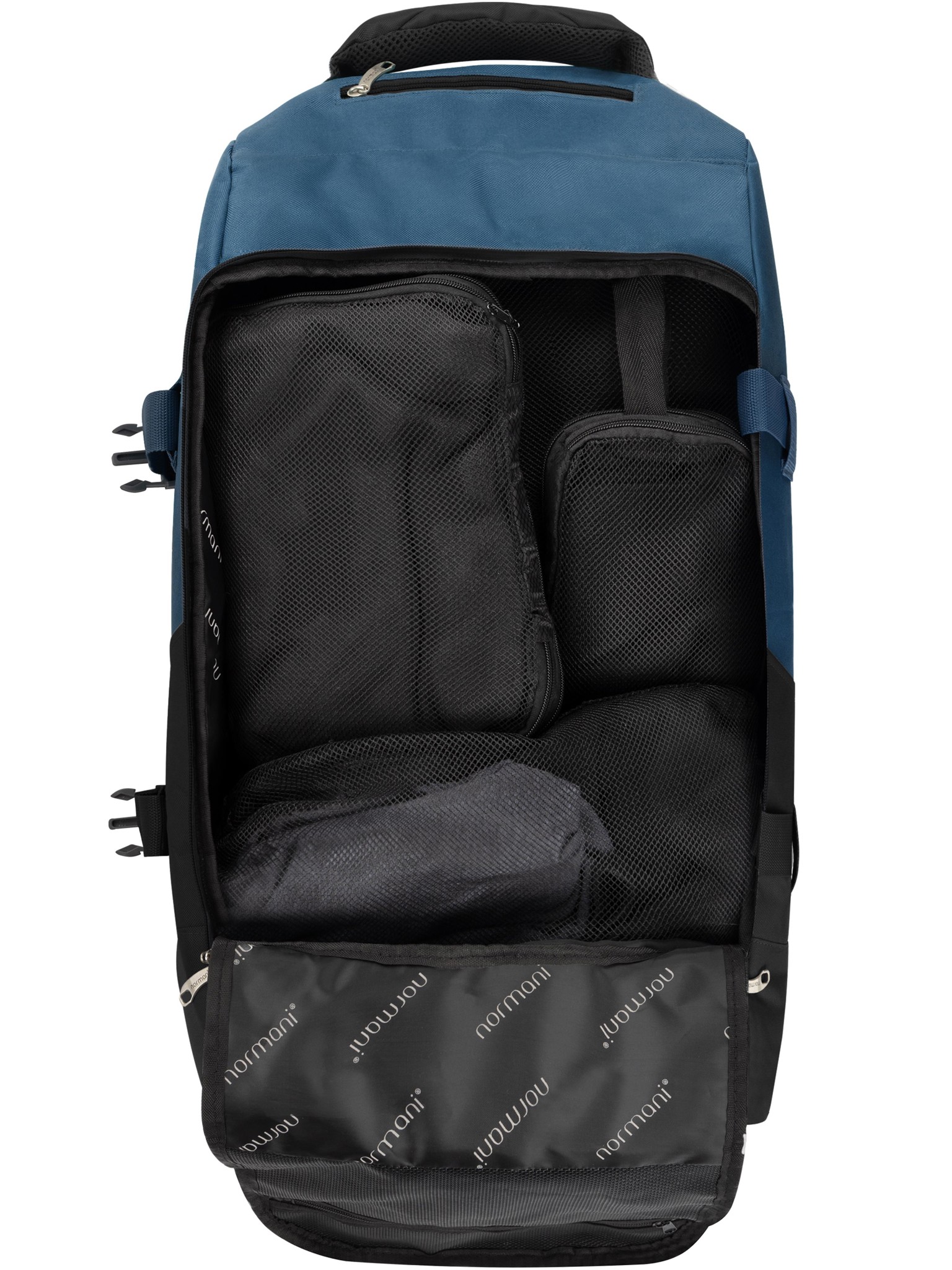 Reisetasche mit Rucksackfunktion 90 L mit 4 Kleidertaschen Schwarz