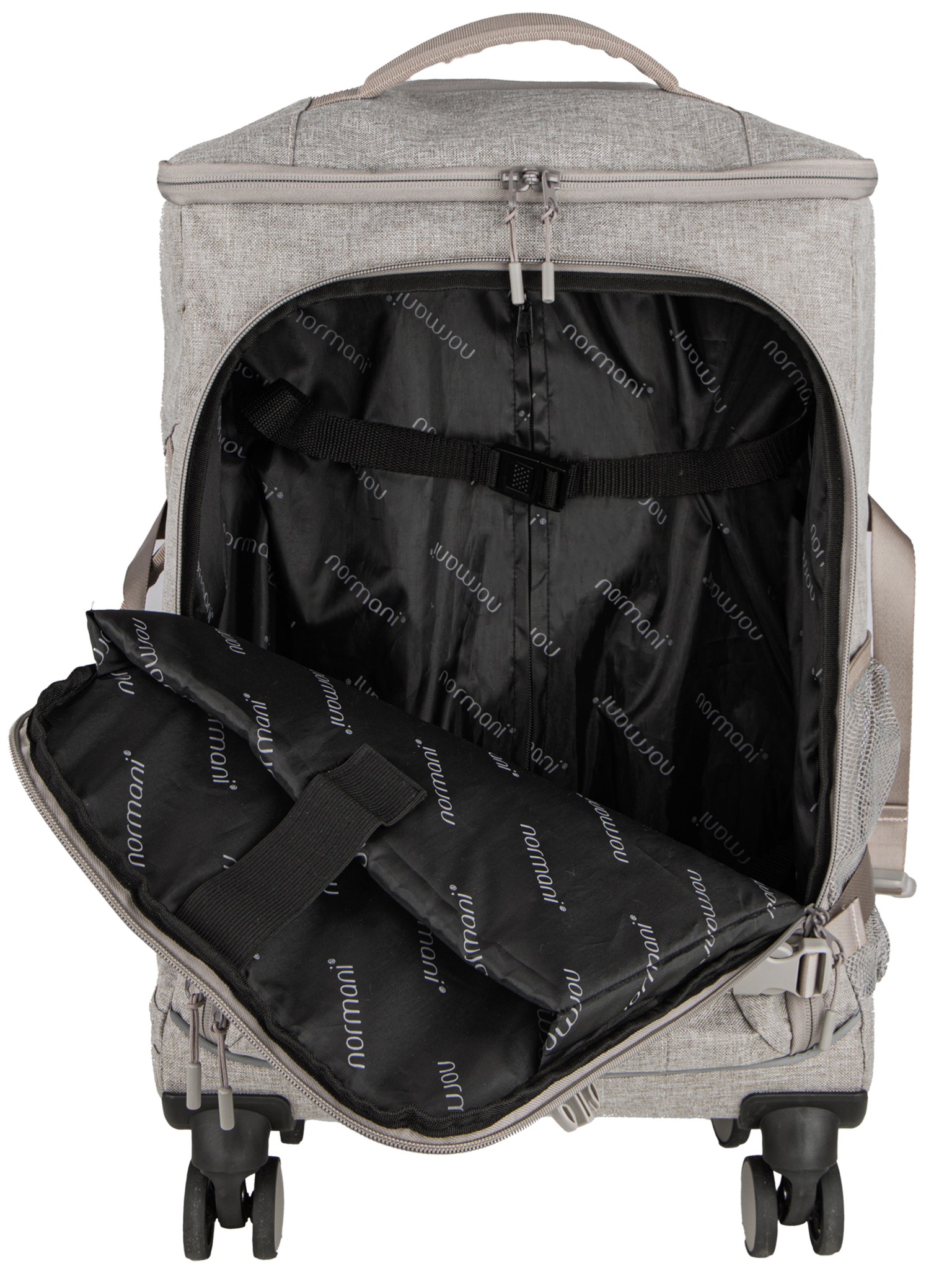 • Der Rucksack ist per Clips am Trolley fixierbar