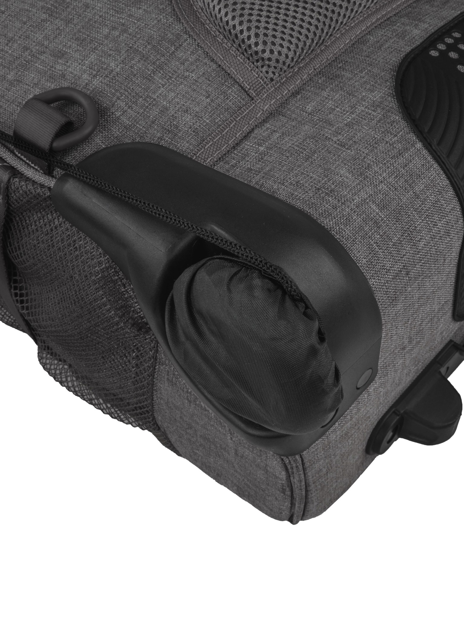Auf Reisen oder unterwegs ist es praktisch einen Rucksack mit zwei Handgriffen in einen Trolley oder eine Tragetasche zu verwandeln. Für noch mehr Freiheit und einen entspannten Urlaub erfüllt dieser Trolleyrucksack die Standard Kabinenmaße 50 x 37 x 20 cm vieler Fluggesellschaften. Auf 37 Liter kann dank der vielen Fächer und der großen Reißverschlussöffnung auf der Vorderseite das Volumen optimal ausgenutzt und bepackt werden. Für unterwegs ist die Rucksacköffnung mit Schnürung perfekt um schnell Gegenstände in den Rucksack unterzubringen oder herauszuholen, oder man nutzt einer der zwei aufgesetzten kleineren Fächer. Wer den Rucksack als Trolley verwendet, wird die Vorteile der leichtläufigen Rollen und des stabilen und ergonomischen Griffs genießen. Auf dem Rücken als Trolley überzeugt die atmungsaktive und weiche Rückenpartie sowie die größenverstellbaren Trageriemen. Der Teleskopgriff lässt sich in 3 Stufen herausziehen (40, 45 und 50 cm) und ist somit für jede Größe geeignet. Für eine optimale Sichtbarkeit im Dunkeln ist der Rucksack an allen Seiten mit unauffälligen reflektierenden Elementen versehen.