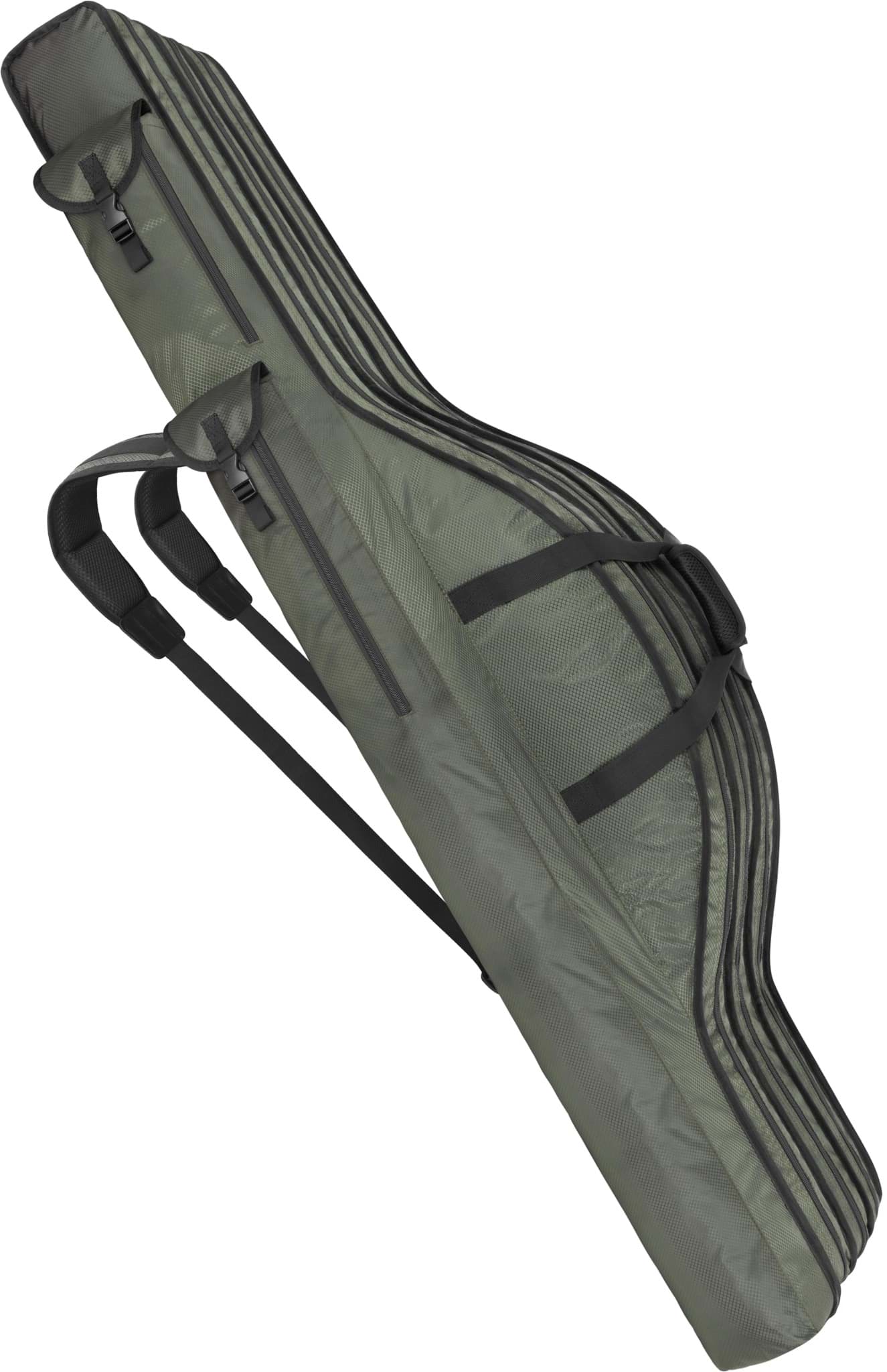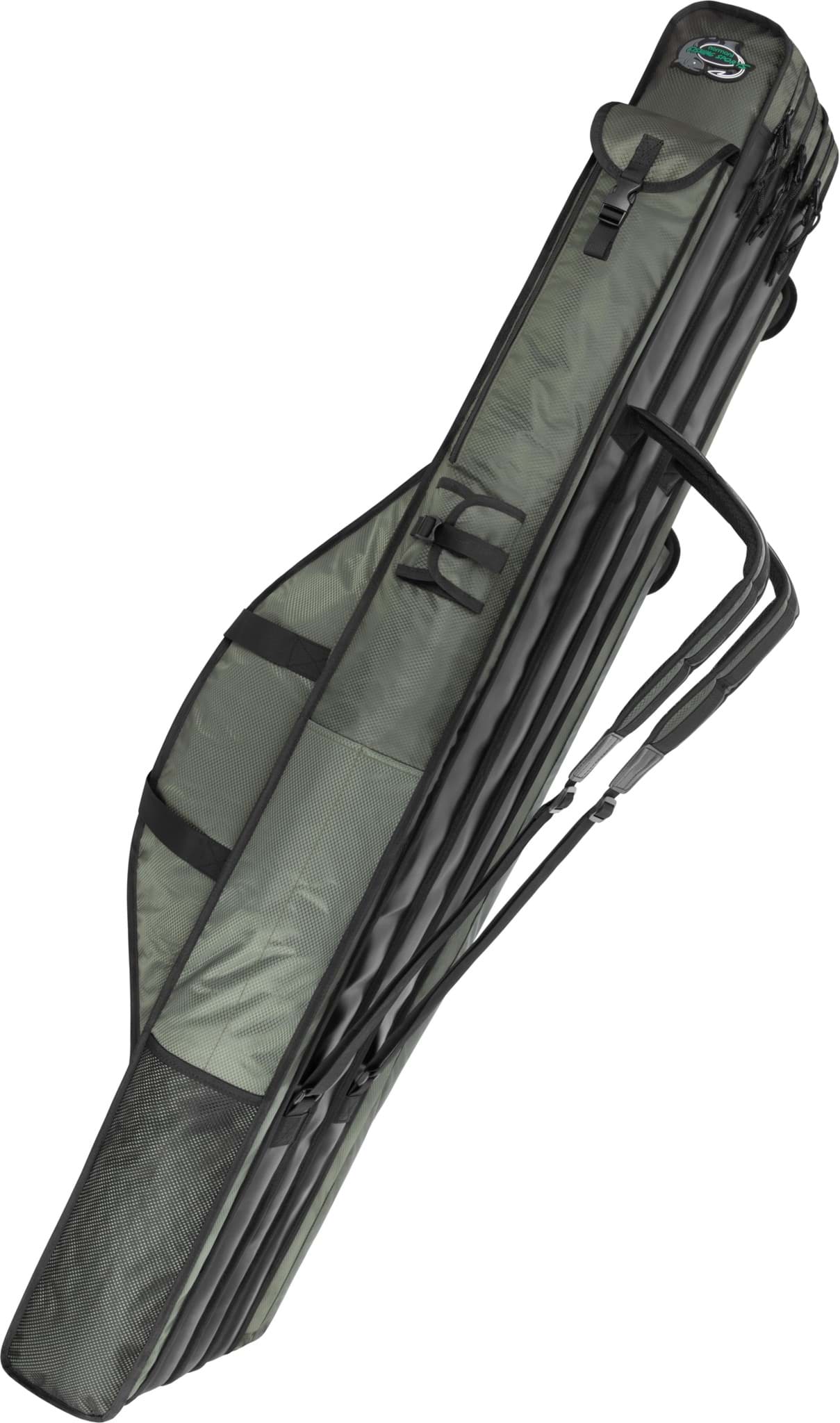 Für maximalen Tragekomfort ist die Rutentasche mit gepolsterten Rucksacktragegurten ausgestattet, die ein bequemes Transportieren auch über längere Strecken ermöglichen. Zusätzlich sorgen zwei stabile Tragegriffe mit Klettverschluss-Fixierung für einfaches Handling beim Ein- und Ausladen. Die durchdachte Gewichtsverteilung unterstützt einen angenehmen Sitz auf dem Rücken und macht die Tasche zum idealen Begleiter für Ansitz- und Karpfenangler, ebenso wie für mobile Spinnangler.